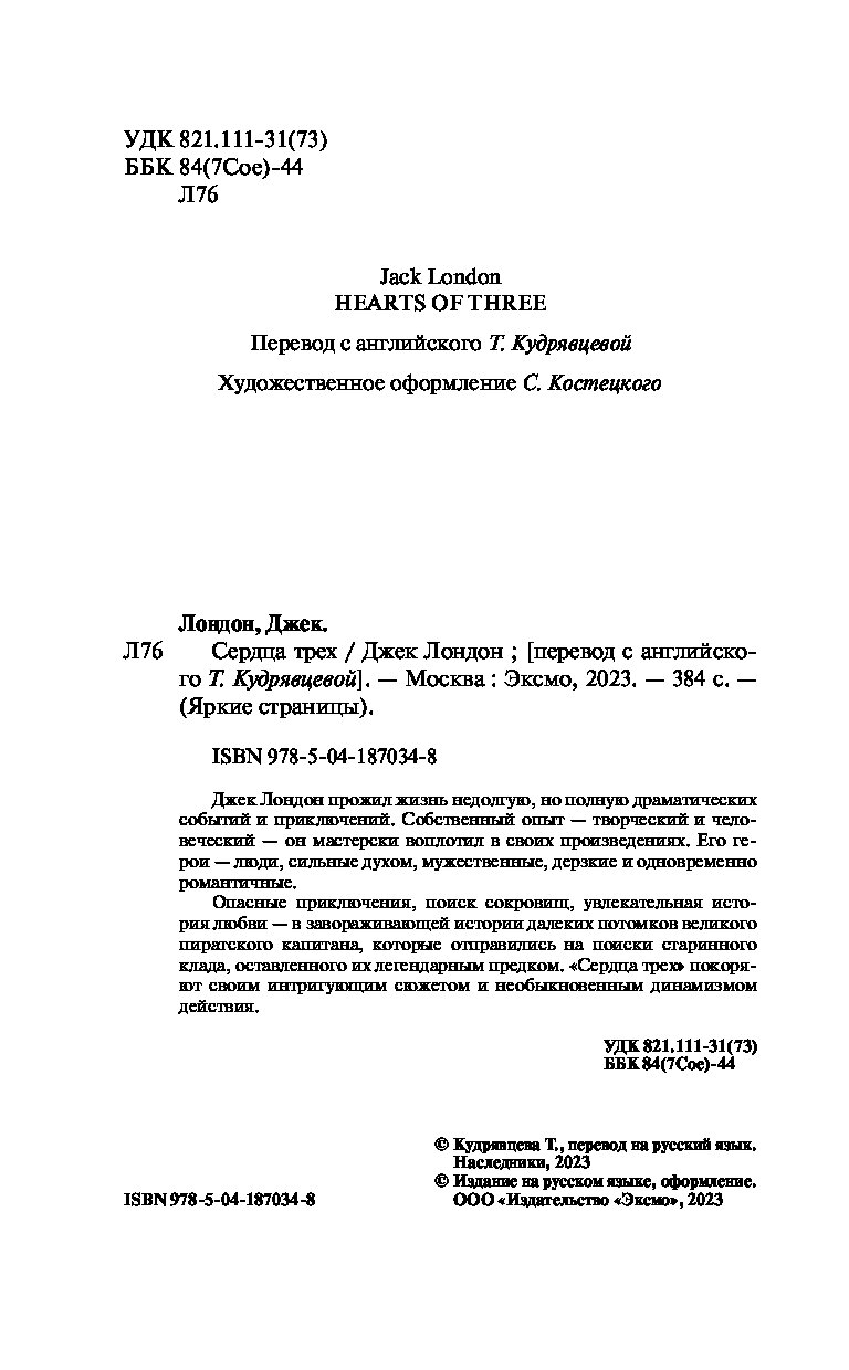 Роман «Сердца трех» покоряет своим интригующим сюжетом и необыкновенным динамизмом действия.