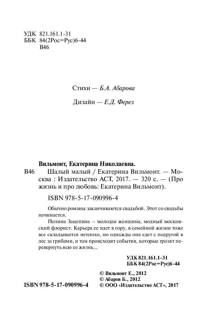 —Книга «Шалый малый» Вильмонт Е.Н.