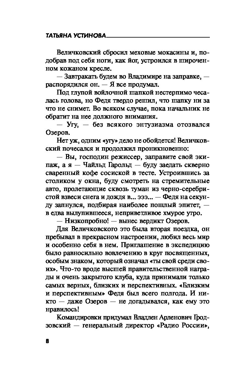 Особенности: Первая среди лучших, Татьяна Устинова не просто удовлетворяет самый взыскательный литературный вкус – она формирует его. Ее романы глубоко психологичны, сюжеты неординарны, персонажи «объемны» и правдивы… Именно поэтому романы Татьяны Устиновой пользуются невероятной популярностью среди читателей.