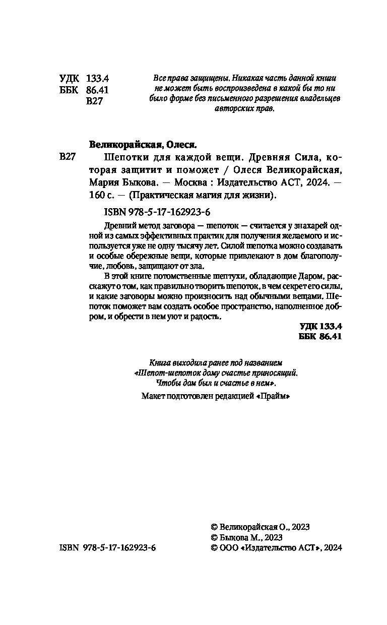 «Шепотки для каждой вещи. Древняя Сила, которая защитит и поможет» Великорайская Олеся, Быкова Мария