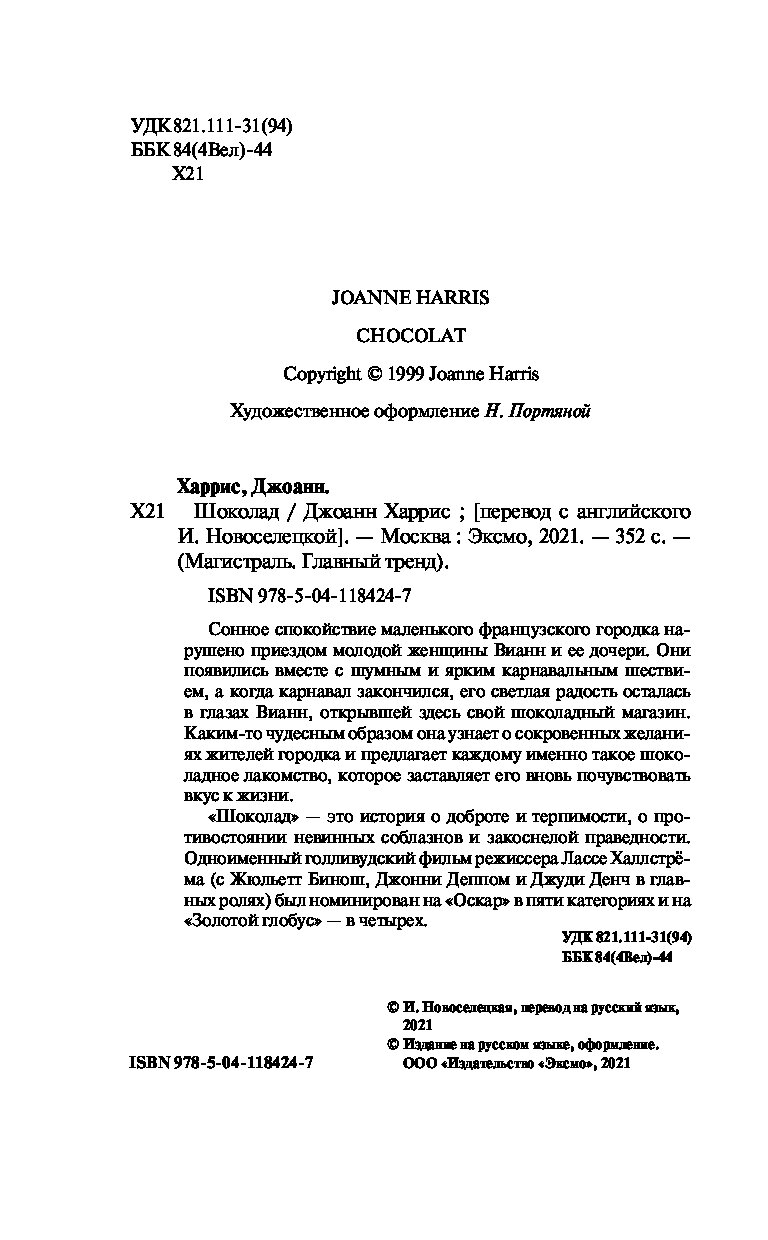 —Книга «Шоколад» Харрис Дж.