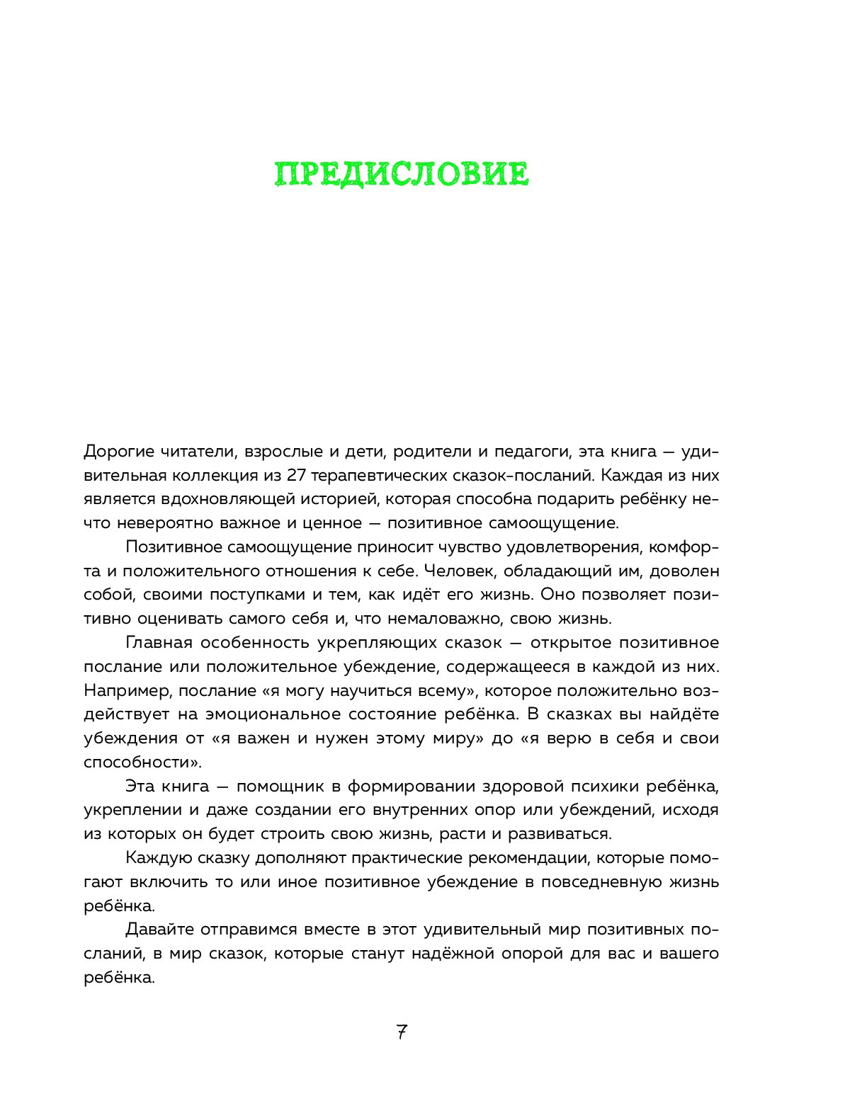 В сказках главным героем может стать даже ваш ребенок — пометки об этом и о специальных обращениях к малышу выделены для родителей в тексте. После каждой истории взрослых и детей ждут увлекательные задания для закрепления доброго послания: это занимательный разговор, игры, упражнения и даже ведение творческих дневников. Книгу будет интересно читать детям от 3 до 8 лет. Вместе с родителями они найдут на плотных белых страницах яркие крупные иллюстрации.