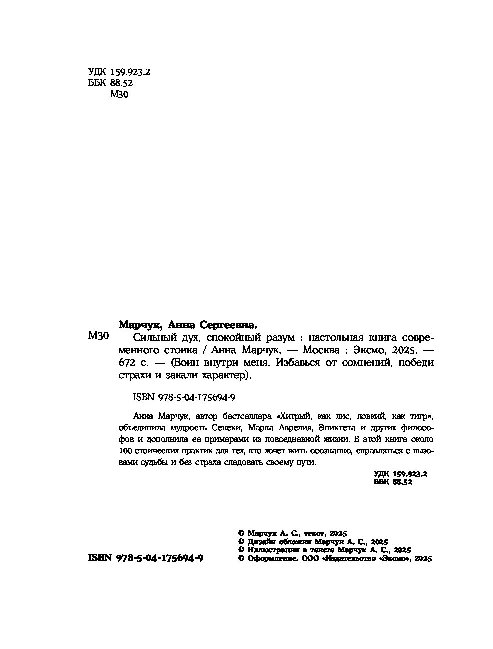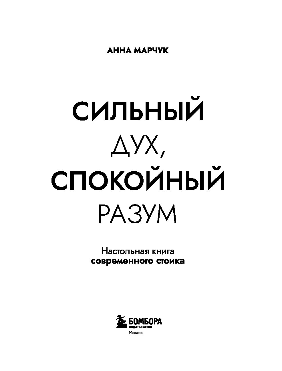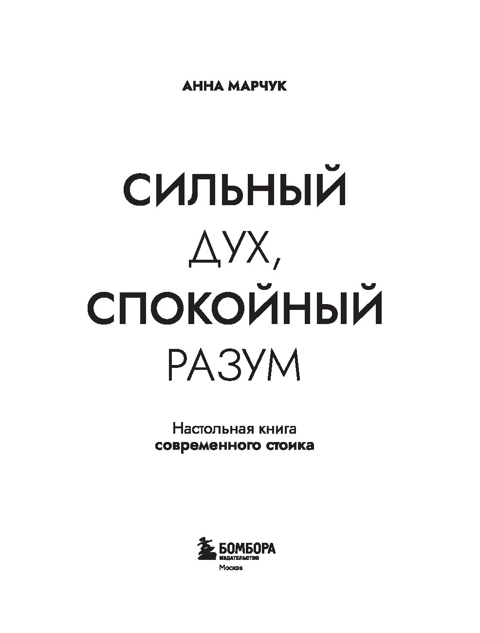 Анна Марчук, специалист по риторике и автор бестселлера «Хитрый, как лис, ловкий, как тигр» собрала ключевые идеи великих философов и дополнила их примерами из повседневной жизни. Получился современный и живой путеводитель по стоицизму — для тех, кто хочет освободиться от тревог, жить осознанно и следовать своему пути.