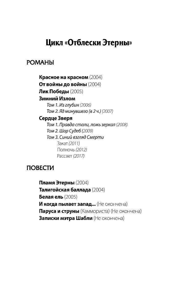 «Отблески Этерны» называют «лучшим образчиком исторического фэнтези на всем постсоветском пространстве». По масштабу, цикл может посоревноваться с романами Александра Дюма и Генрика Сенкевича.