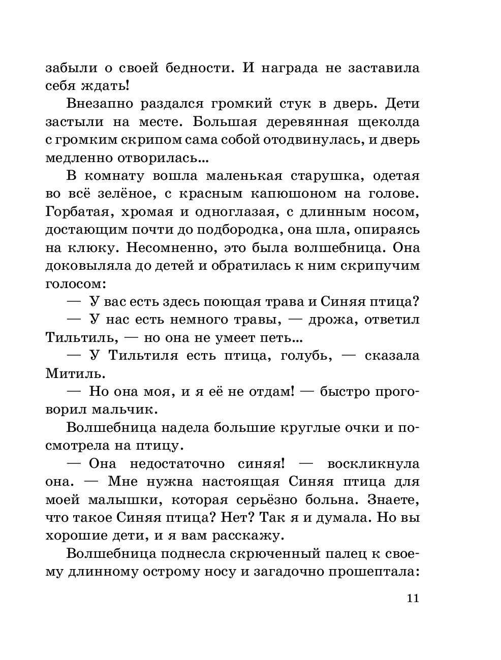 В волшебной сказке бельгийского писателя Мориса Метерлинка «Синяя птица» есть всё, что любят дети: прекрасная фея, чудесные превращения, увлекательное путешествие, тайны, загадки, фантастические места и, конечно, счастливый финал. И вместе с тем юные читатели получат удивительные уроки доброты, смелости, честности, преданности. «Быть смелым, чтобы видеть скрытое» — одна из главных идей прекрасной истории.