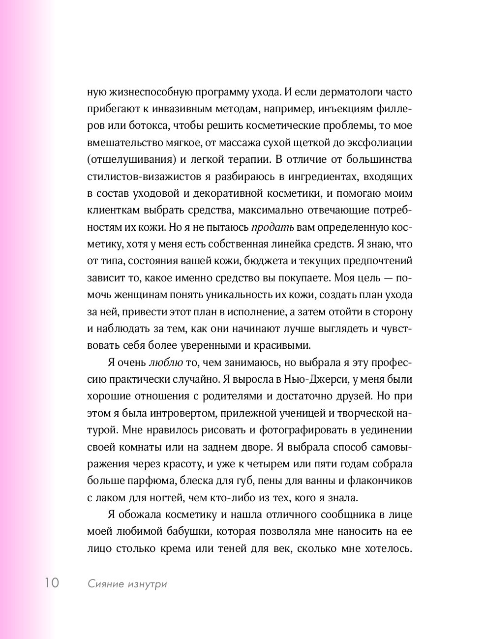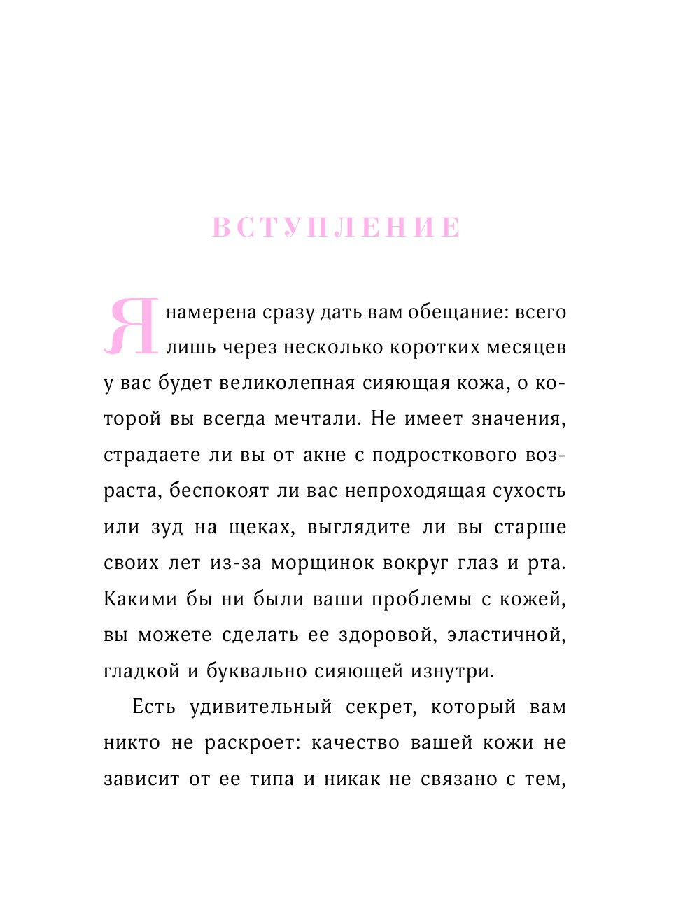 С этой книгой вы: подберете ежедневный уход, подходящий именно вашему типу кожи; узнаете, какие продукты мешают коже выглядеть здоровой; поймете, когда на самом деле начинается старение и как его замедлить; разберетесь, как быстро привести кожу в порядок — за полгода, месяц или даже неделю; откроете секрет естественного сияния без уколов и аппаратных процедур; узнаете, почему «пейте больше воды и высыпайтесь» — не всегда работает.