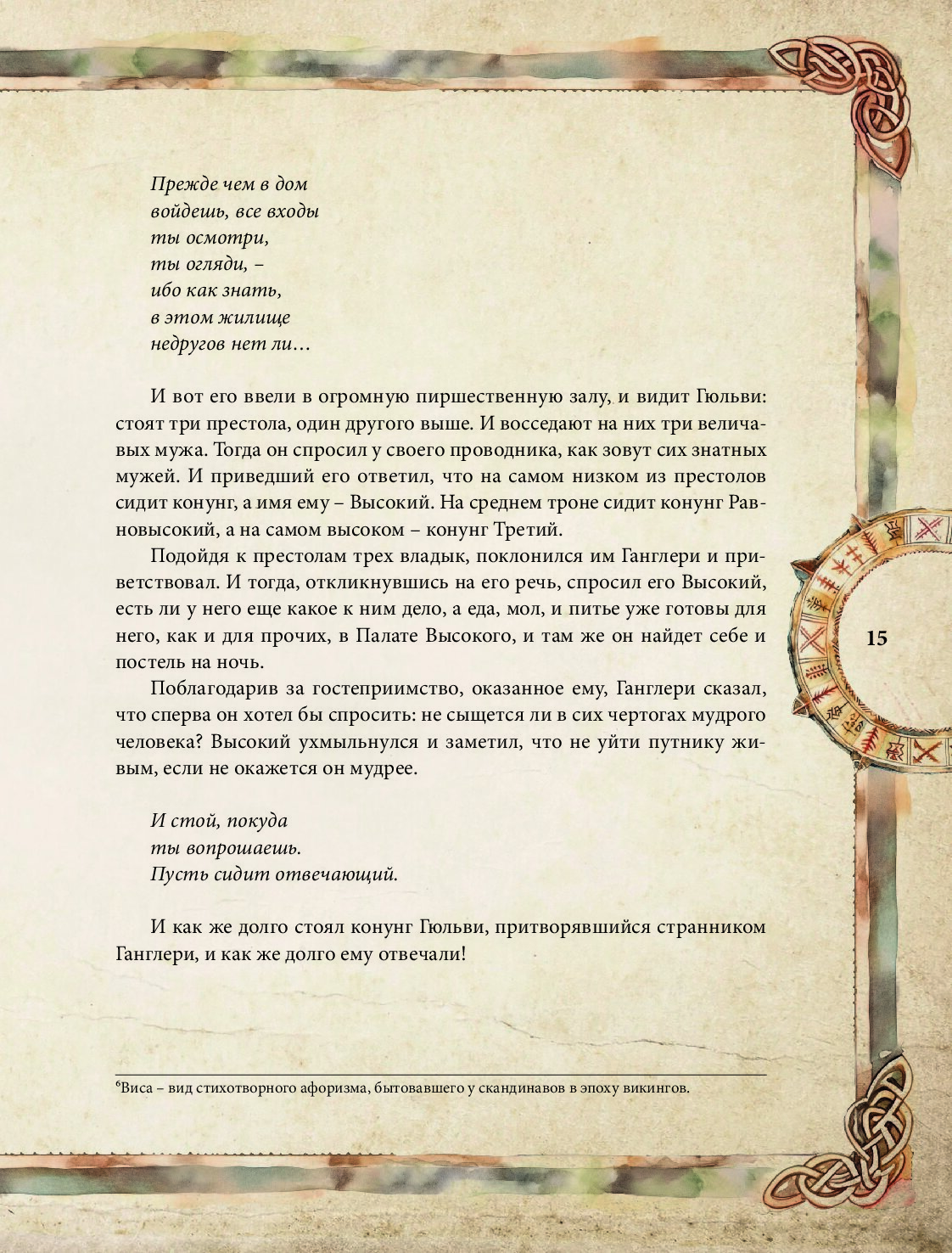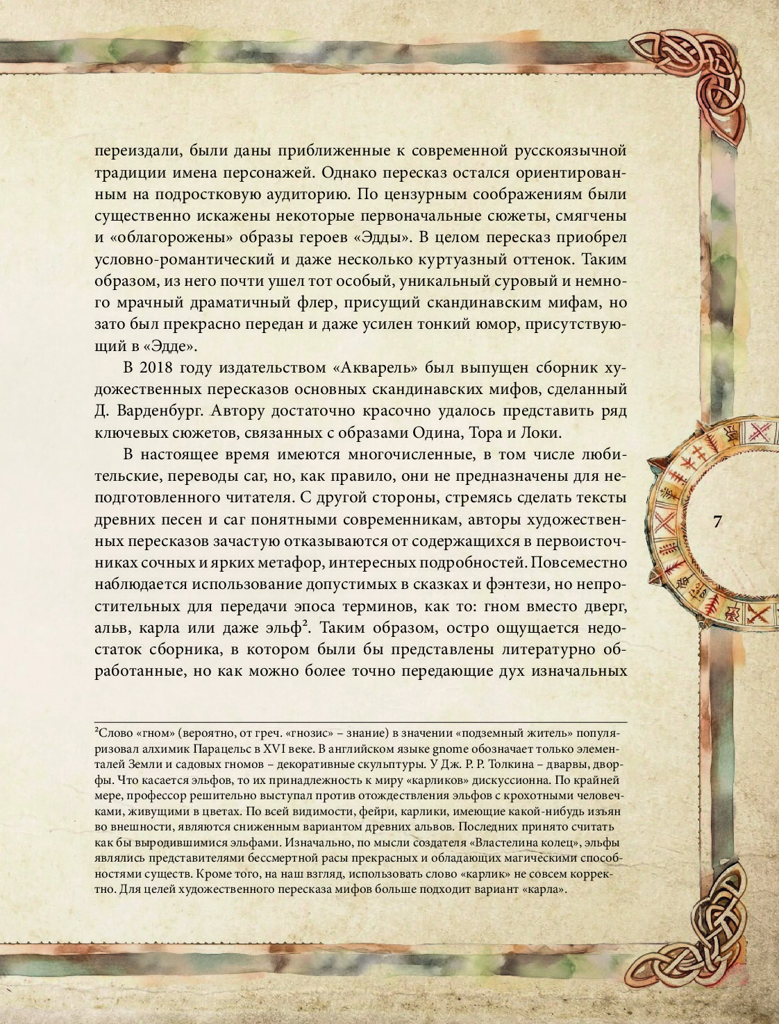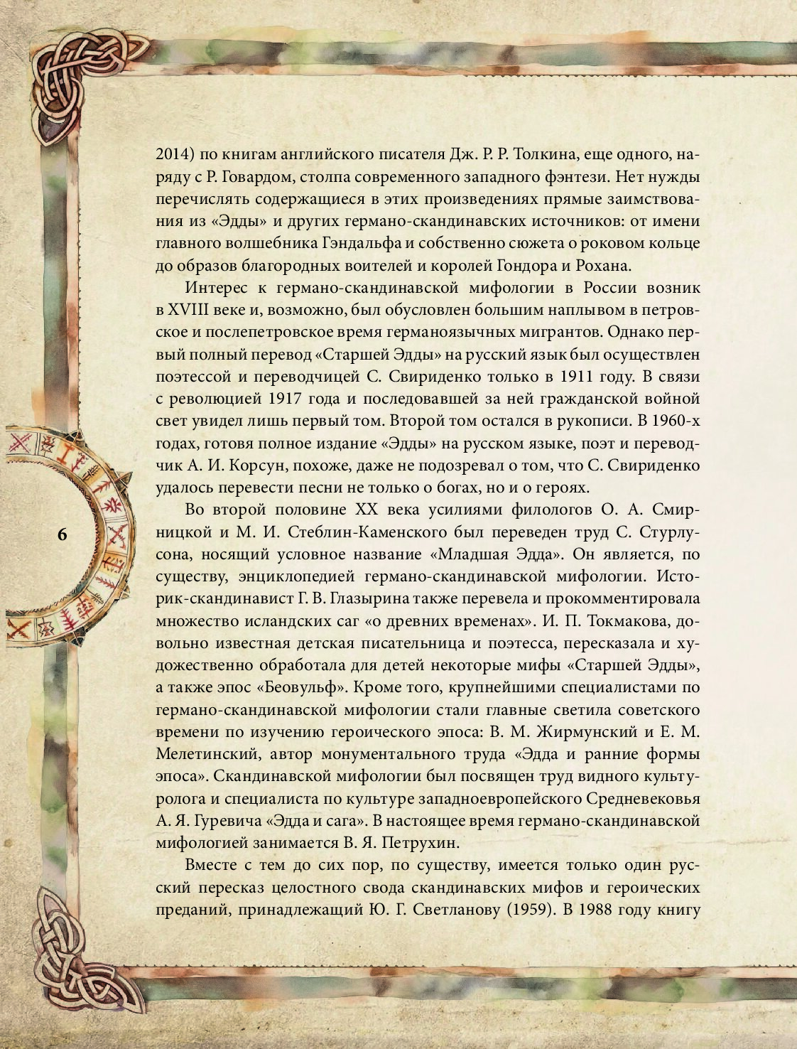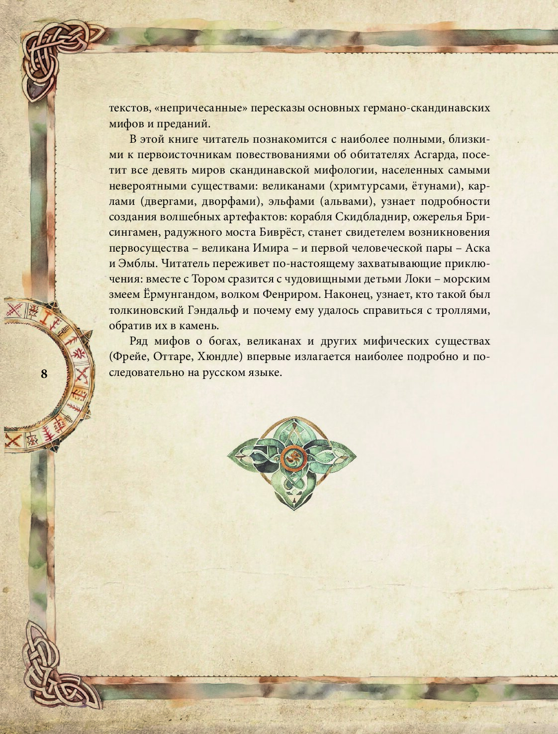 Богатое оформление и многочисленные иллюстрации, созданные художницей Ларисой Салиевой специально для этой книги, сделают ее отличным подарком для всех интересующихся мифами, и особенно для поклонников и любителей скандинавской мифологии.