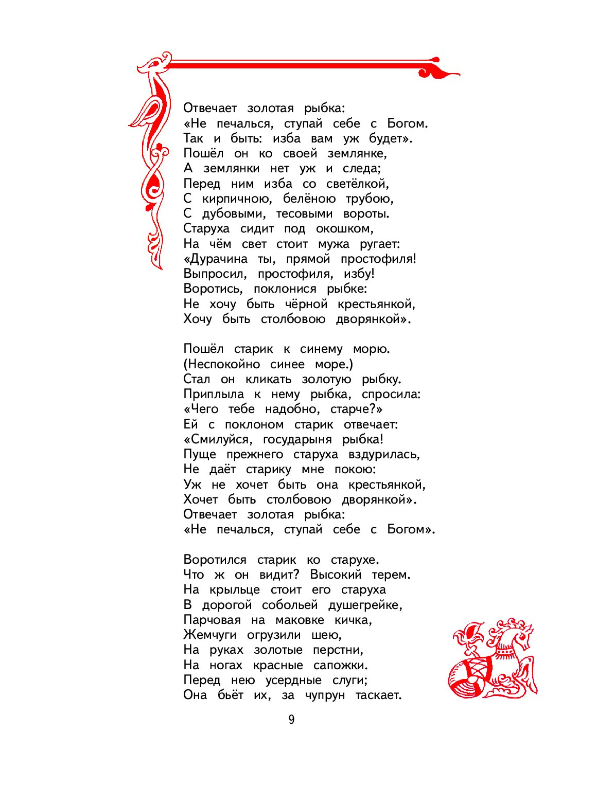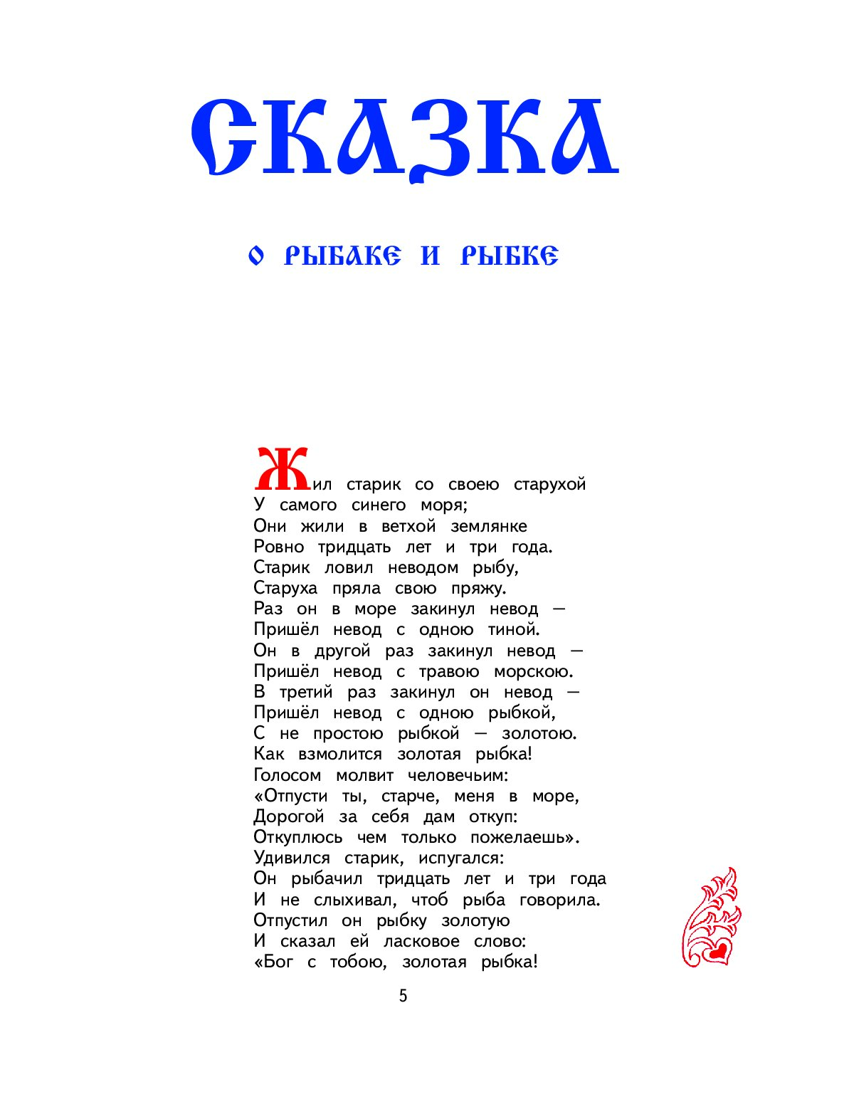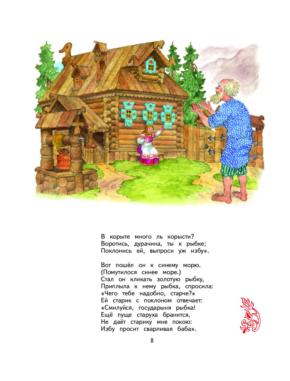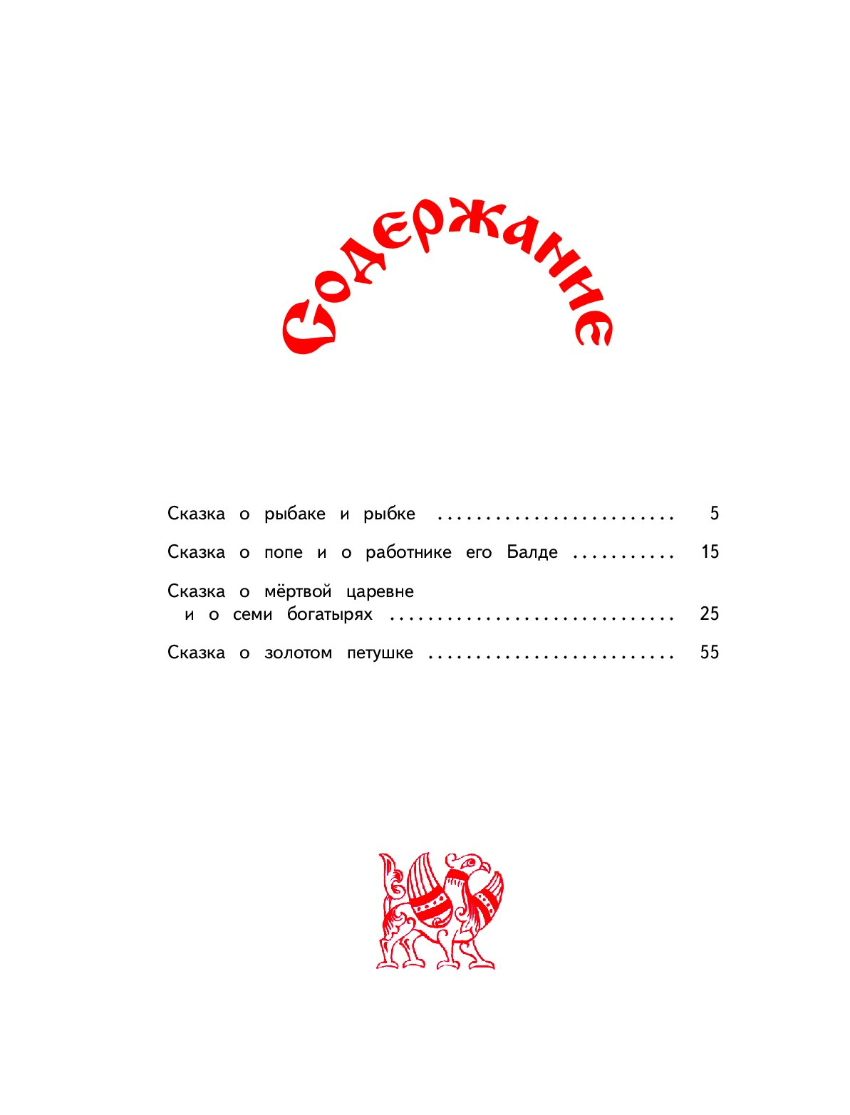 В прекрасно иллюстрированную книгу сказок  вошли самые известные стихотворные произведения А.С.Пушкина: "Сказка о рыбаке и рыбке", "Сказка о попе и работнике его Балде", "Сказка о мертвой царевне..." и "Сказка о золотом петушке". Волшебные рисунки Станислава Ковалёва, оформление стильными русскими орнаментами делают эту книгу прекрасным подарком. Все произведения книги входят в школьную программу.