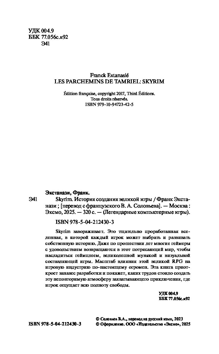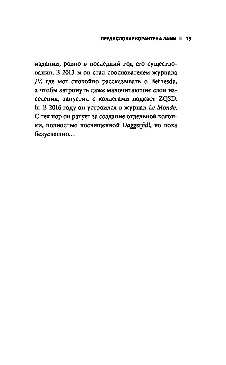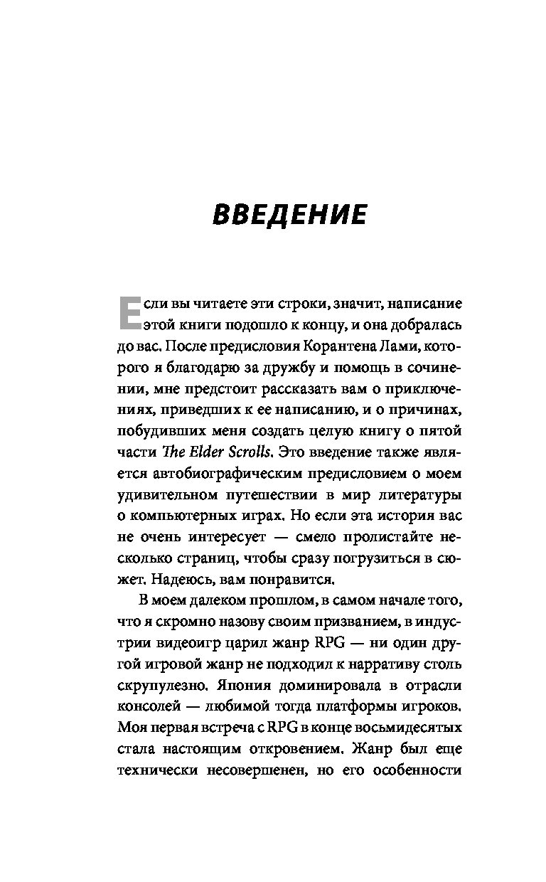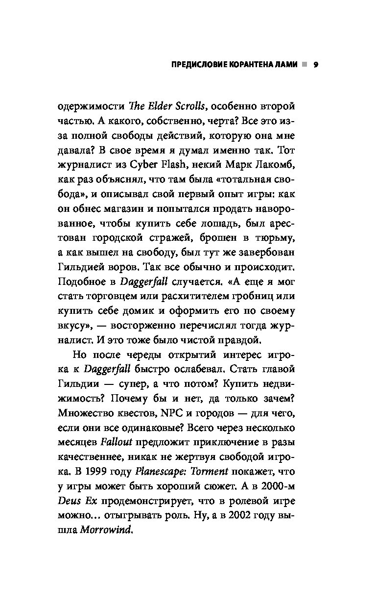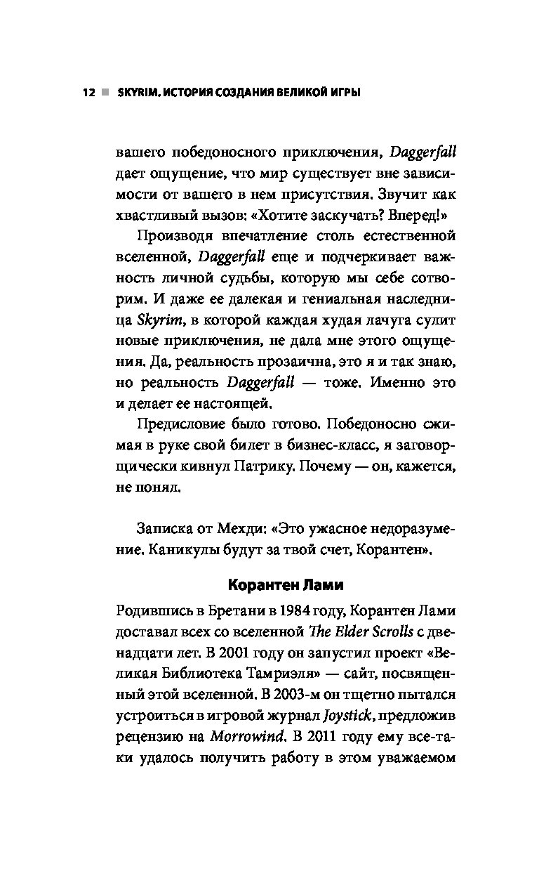 «Книга расскажет вам о рождении знаковой части TES. Вы узнаете формулу ее успеха и щепетильные детали эволюции геймплея, ощутите роль консолей и 200 лет лорных мучений между Oblivion и Skyrim. А самое главное — заглянете в сказку с другой стороны, чтобы каждый раз при входе в игру произносить: "И вновь я в сказку возвращаюсь..."» — КОНСТАНТИН ИВАНОВ, бренд-директор AdQuantum, автор телеграм-канала ВсраTEC, магистр Дома Телванни