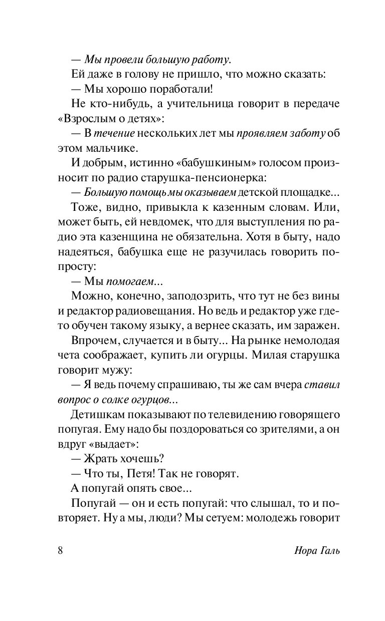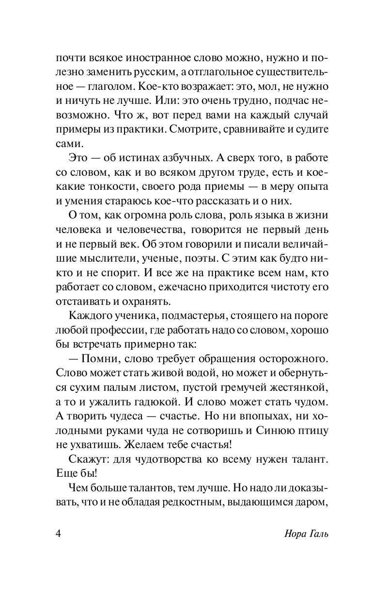 — Нора Галь говорит о сложных вещах — просто. Благодаря ясному изложению заковыристых вопросов лингвистики, вы откроете для себя мир русского языка с другой стороны.