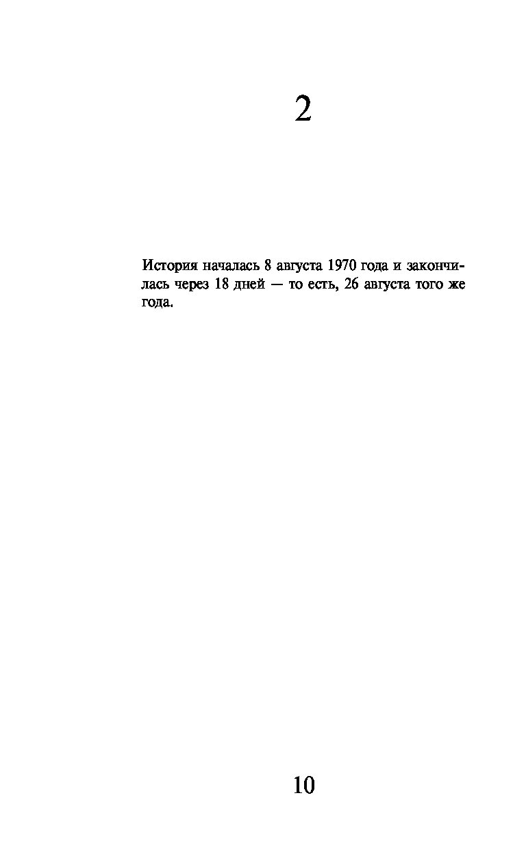 История началась 8 августа 1970 года и закончилась через 18 дней — то есть 26 августа того же года. Вся история длится девятнадцать полных дней уверяет нас герой-рассказчик, но не автор.
