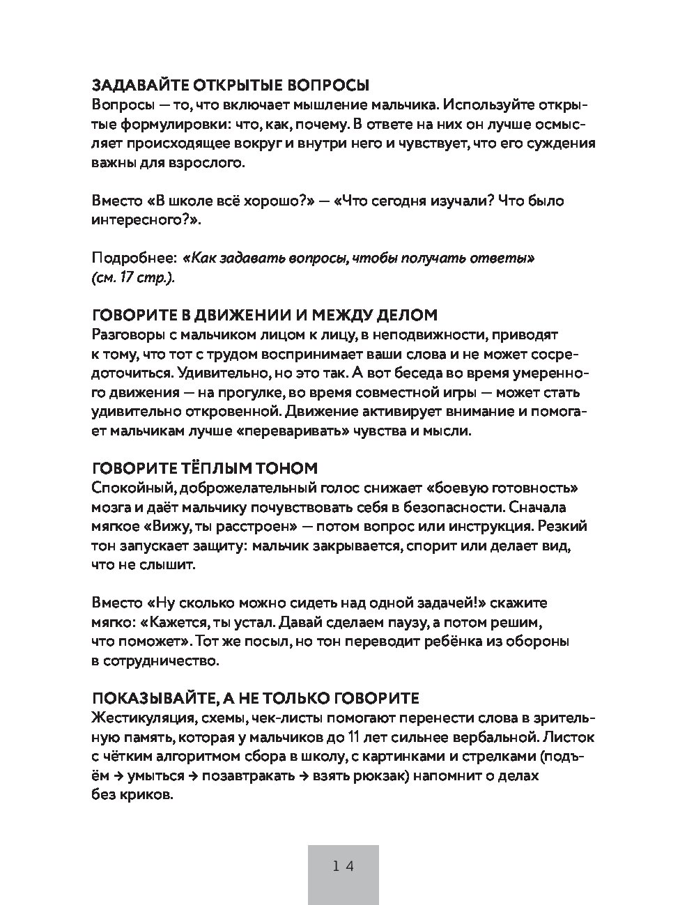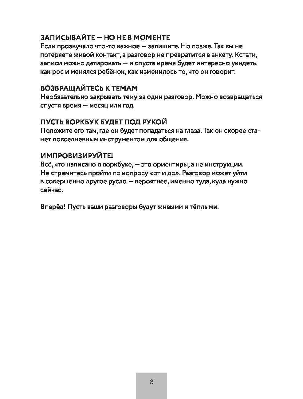 - Внутри больше 40 вопросов, которые пробуждают искренность и укрепляют доверие, и пояснения от психолога, почему и когда необходимо начинать разговор.