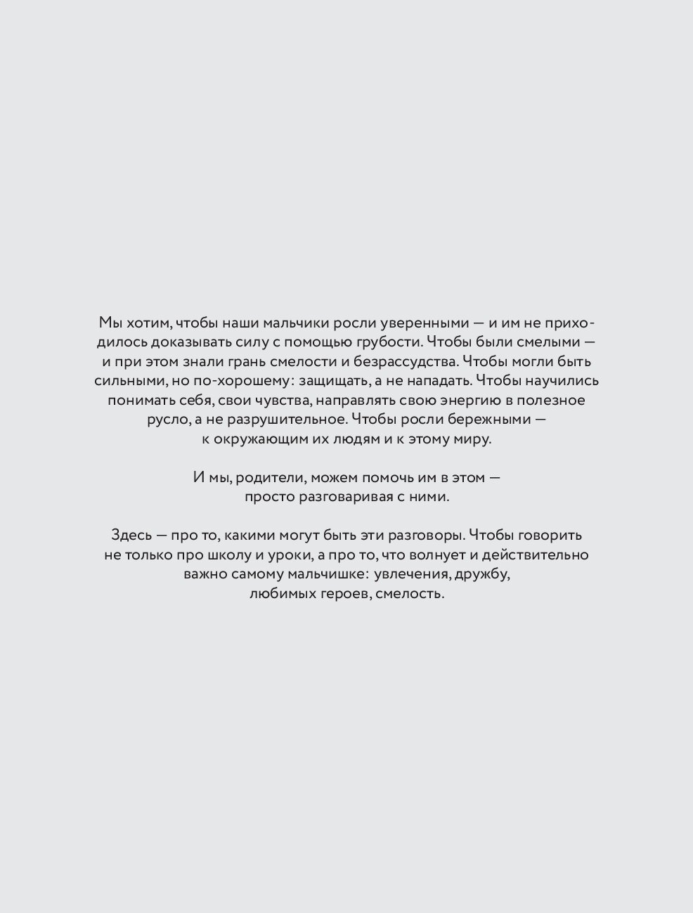 - Поднимаются самые важные темы для воспитания сына — семья, сверстники, границы, мужественность, самостоятельность, гаджеты, увлечения.