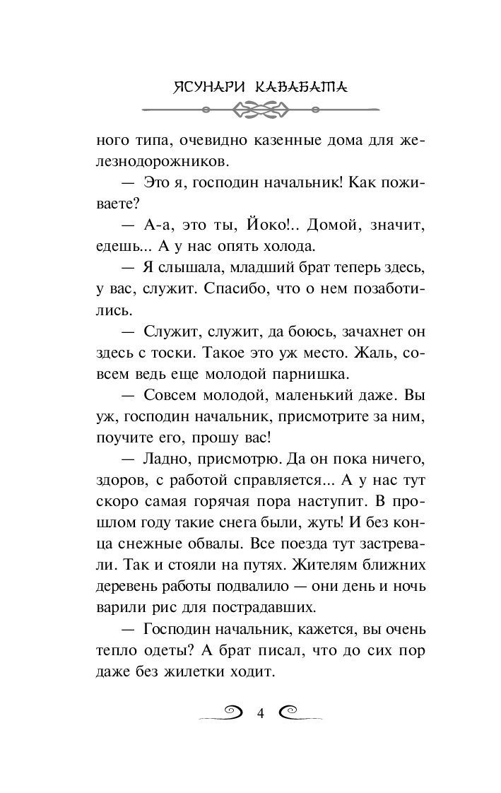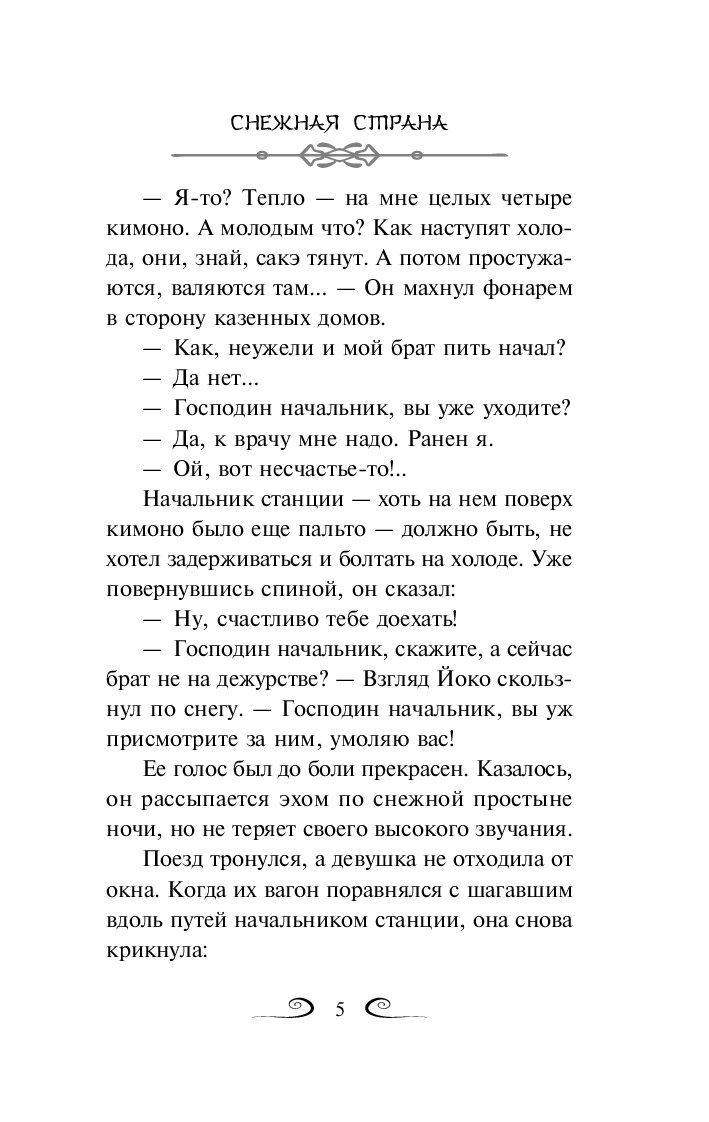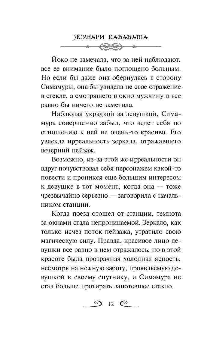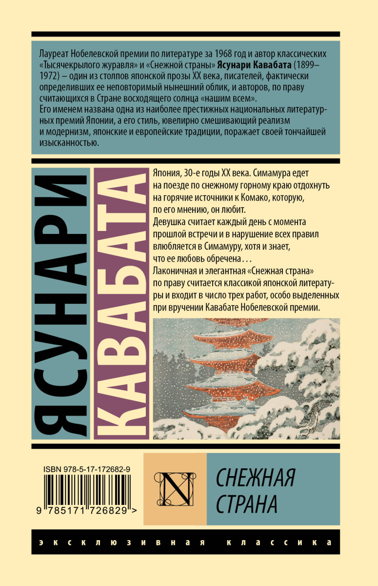 — Ясунари Кавабата — первый японский лауреат Нобелевской премии по литературе, а «Снежная страна» — одно из трех произведений автора, отдельно выделенных Нобелевским комитетом при вручении награды.