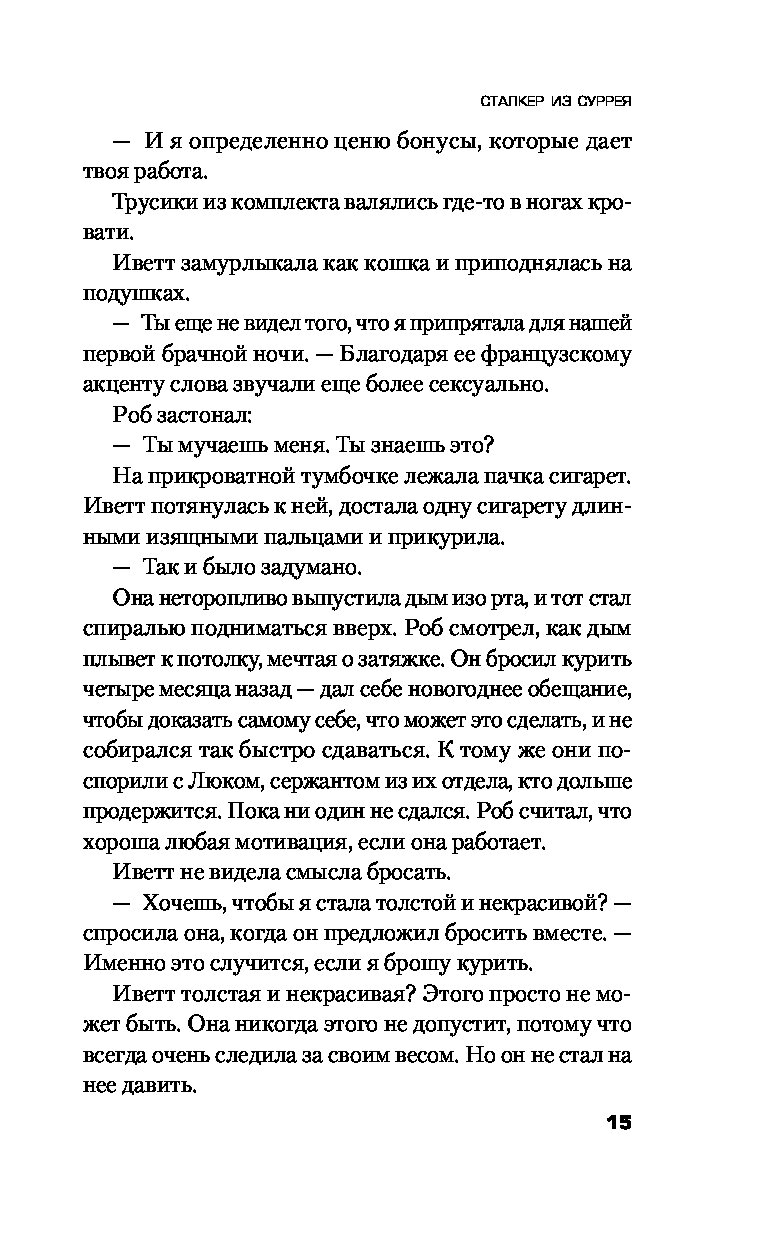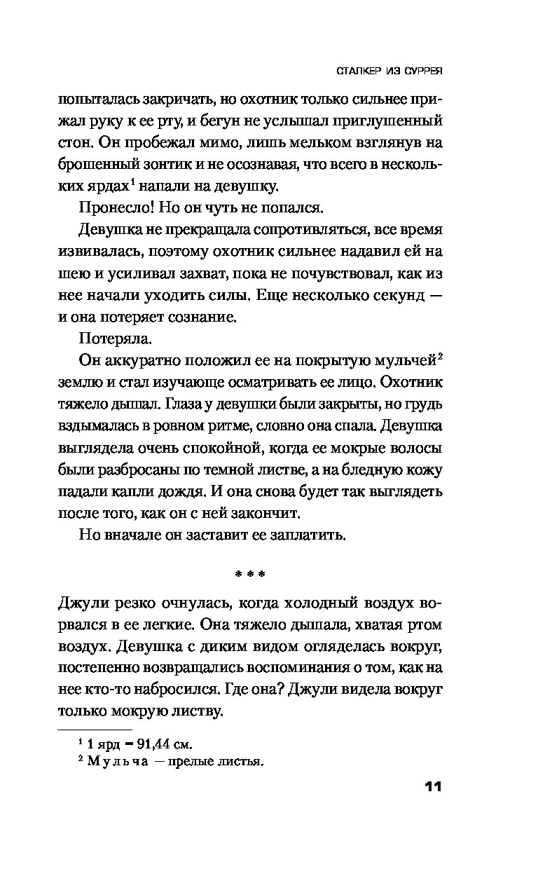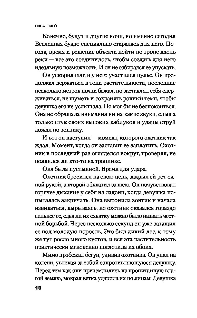 Для молодого и амбициозного инспектора Роба Миллера это первое серьезное расследование. Он должен во что бы то ни стало предотвратить очередное нападение. У детектива есть только составленный профиль маньяка и его особый почерк, которым тот любит метить своих жертв. В этом деле нельзя терять ни минуты, ведь уже началась новая охота.