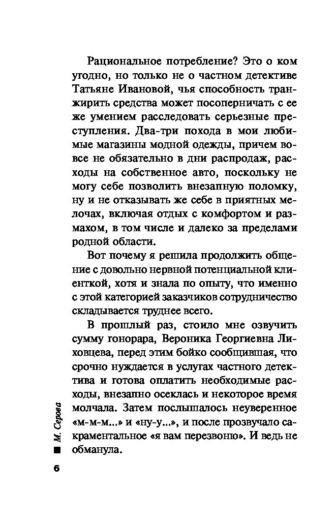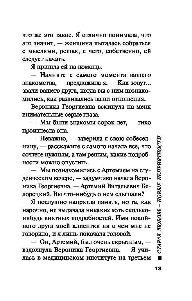 К частному детективу Татьяне Ивановой обращается Вероника Лиховцева с просьбой расследовать обстоятельства смерти ее давнего друга. Артемий Белорецкий вел достаточно разгульный образ жизни, был очень популярен у женщин, но Лиховцева, преданно любящая его более сорока лет, не может примириться с этой утратой. Полиция настаивает, что с Белорецким произошел несчастный случай, но частный детектив Иванова готова докопаться до настоящей причины гибели дамского угодника…