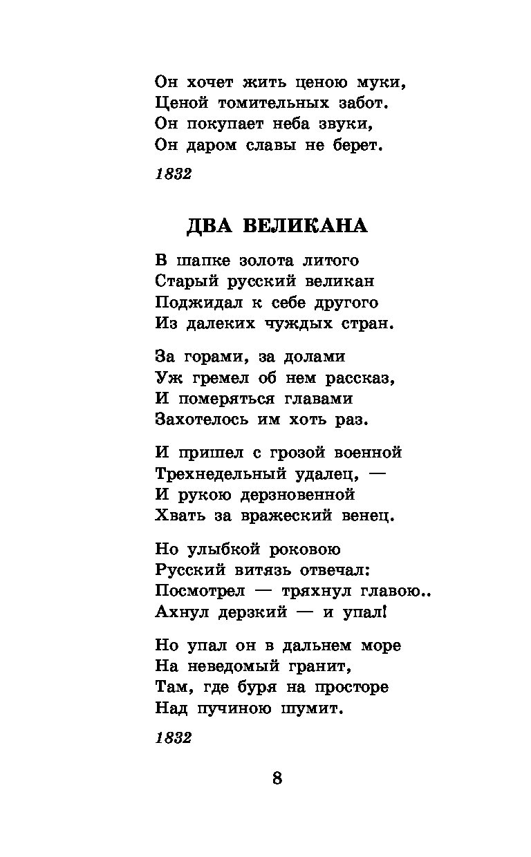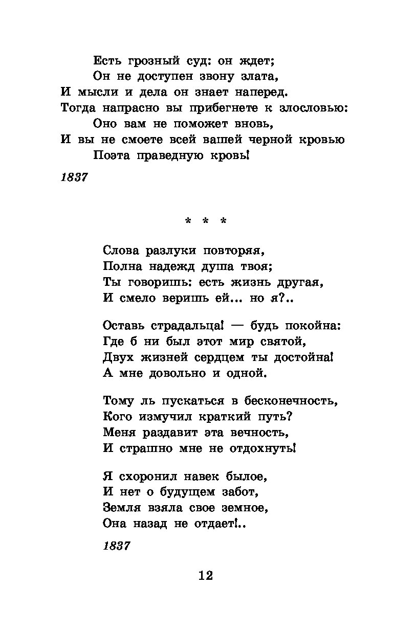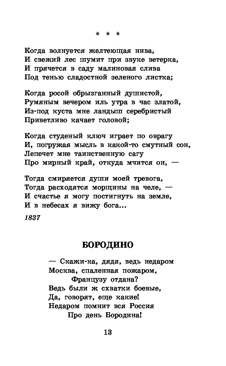 Все, что создано поэтом за короткую жизнь – это подвиг во имя свободы и Родины. И заключается он не только в прославлении бородинской победы («Бородино», 1837), в строках «Люблю отчизну я…» («Родина», 1841), но и в тех сочинениях, где говорится о судьбе поколения, о назначении поэта, об одиноком узнике, об изгнании, о пустоте жизни.