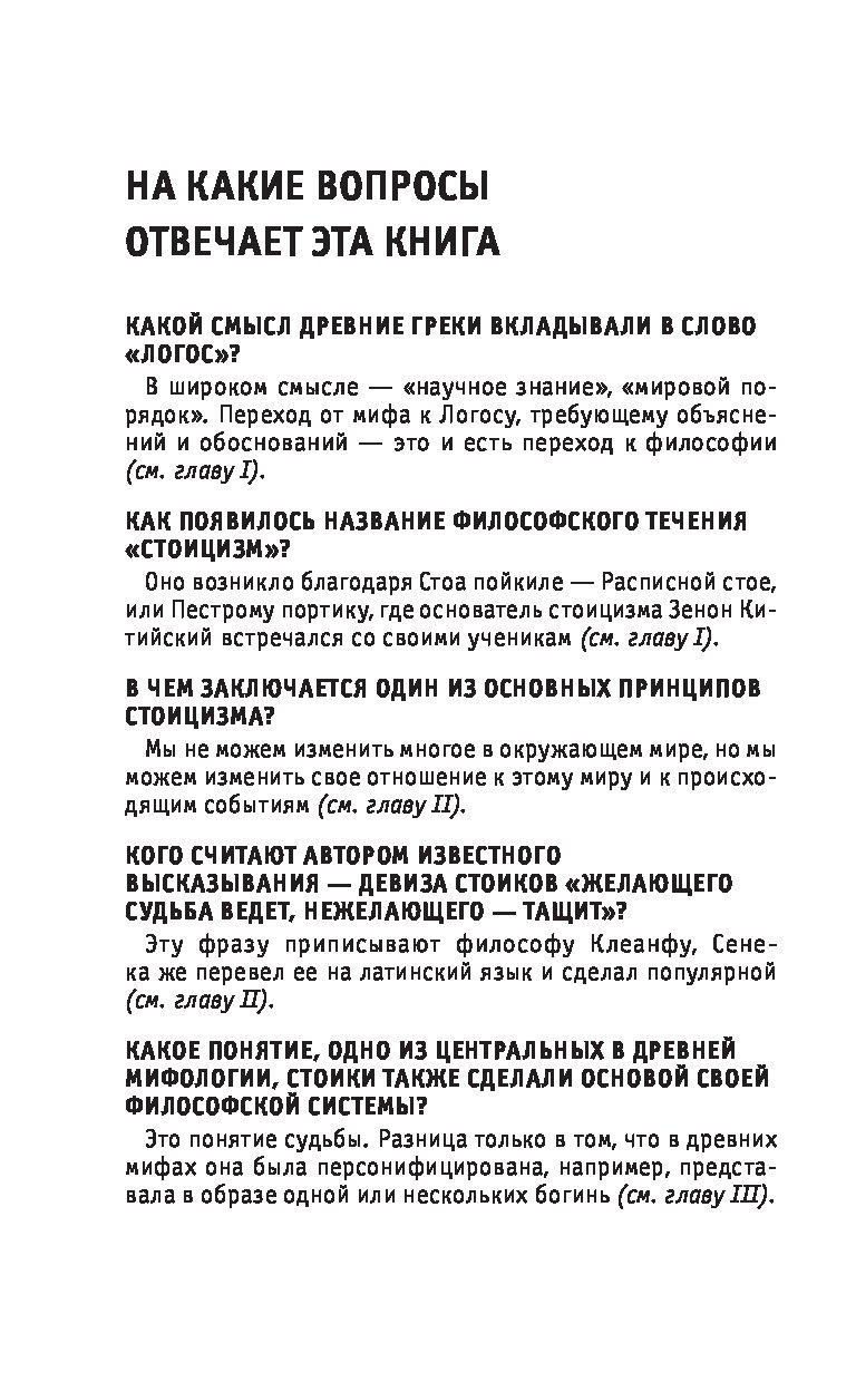 Эта книга проведет вас через основы стоической философии, познакомит с ее выдающимися последователями, такими как Сенека, Эпиктет и Марк Аврелий, и предложит практические упражнения, которые помогут интегрировать стоицизм в повседневную жизнь. Вы узнаете, как применять стоические концепции в отношениях, на работе и в личной практике, чтобы найти более глубокий смысл, спокойствие и удовлетворенность.