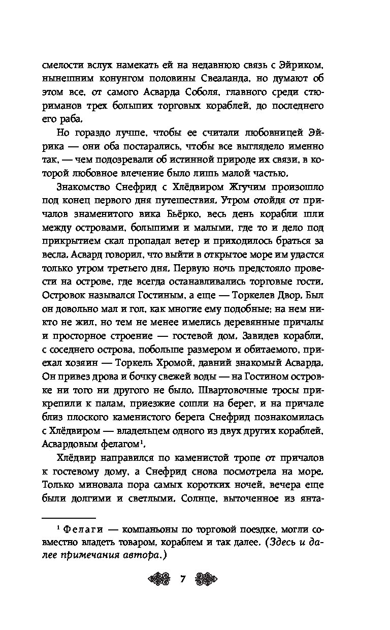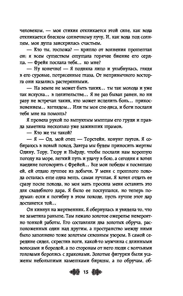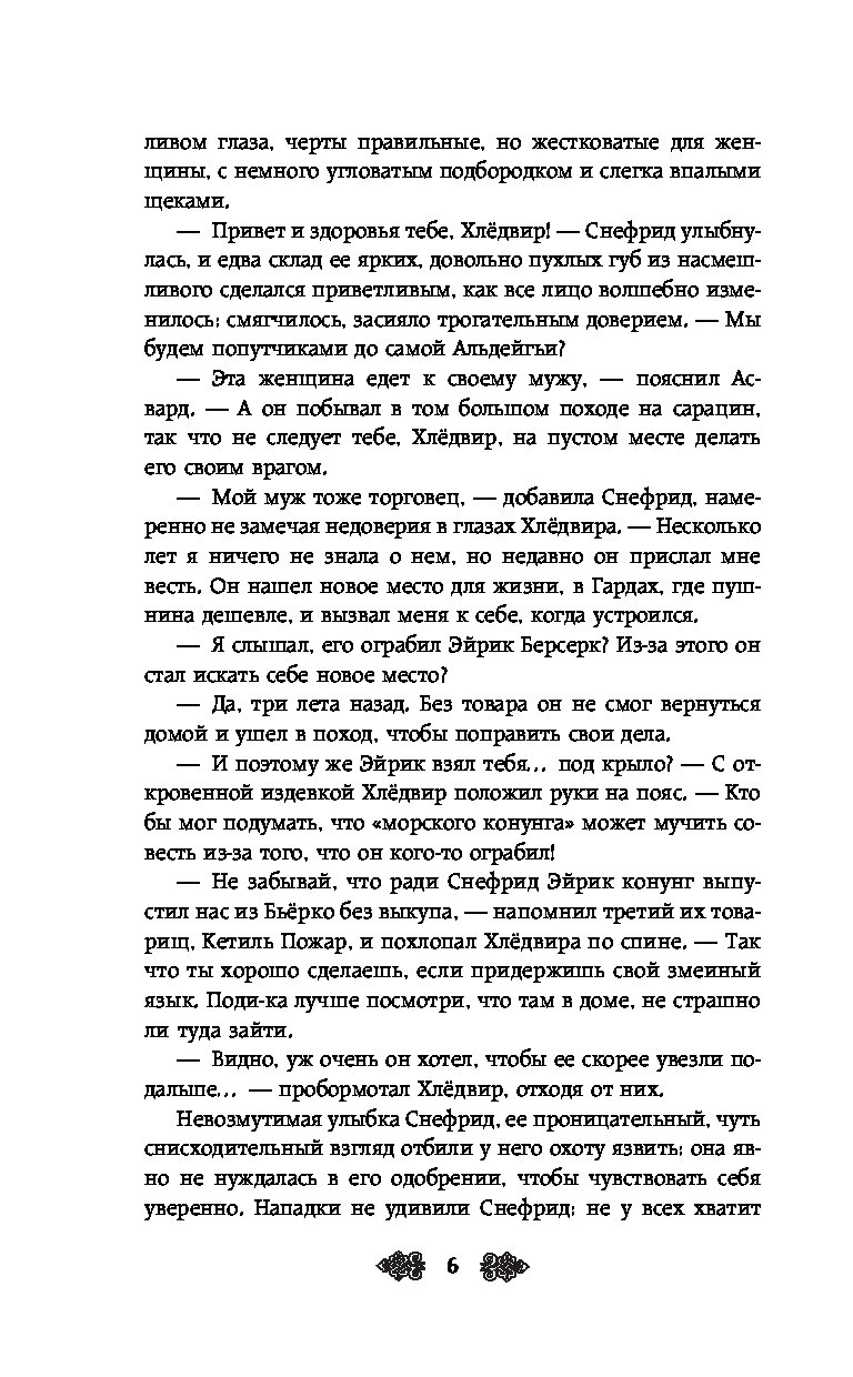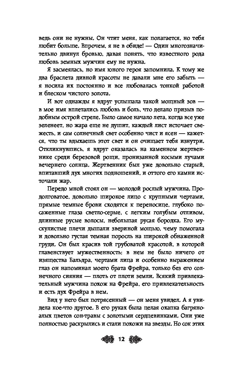 Но судьба Снефрид — лишь поле, на котором разыгрывается очередной круг борьбы Одина и Фрейи, поединок вдохновленного разума с загадкой жизни и любви. История путешествия Снефрид через море, из Швеции на Русь, тесно переплетается с историями из жизни Асгарда, рассказанными самой Фрейей, историями об упорстве женской души в борьбе за любовь.