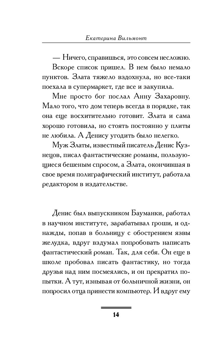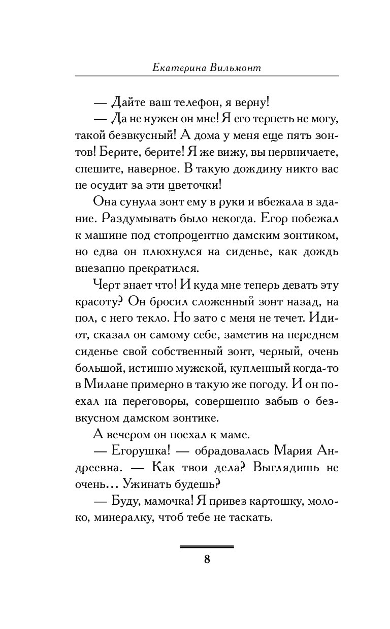 • Романы Вильмонт любят за динамичные, захватывающие сюжеты, простой и яркий язык.