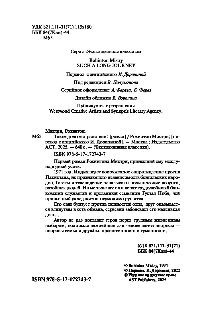 — «Такое долгое странствие» Мистри Р.