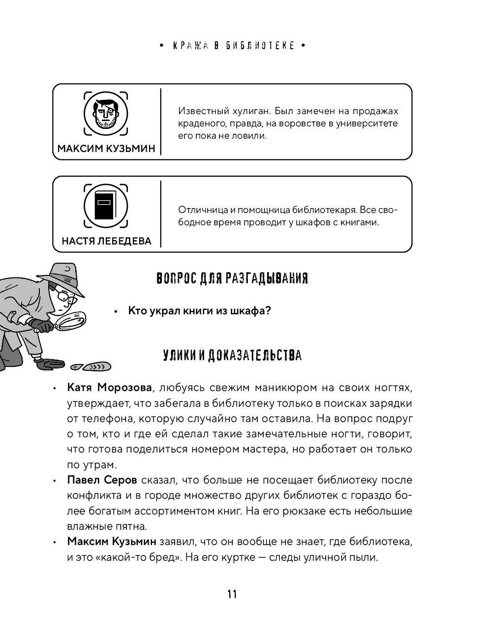 С этой серией книг вы сможете примерить на себя роль настоящего сыщика! В книгах собраны самые разные детективные задачки, начиная от кражи денег и заканчивая жутким убийством. Вас ждёт 40 головоломок любого уровня сложности: их будет под силу разгадать как начинающим детективам, так и специалистам высшей категории.