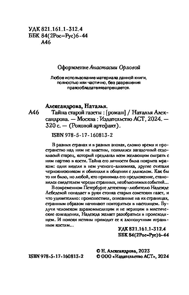 — Артефакт-детективы Натальи Александровой — это увлекательный микс запутанных преступлений, мистических загадок и секретов, овеянных ореолом древности.