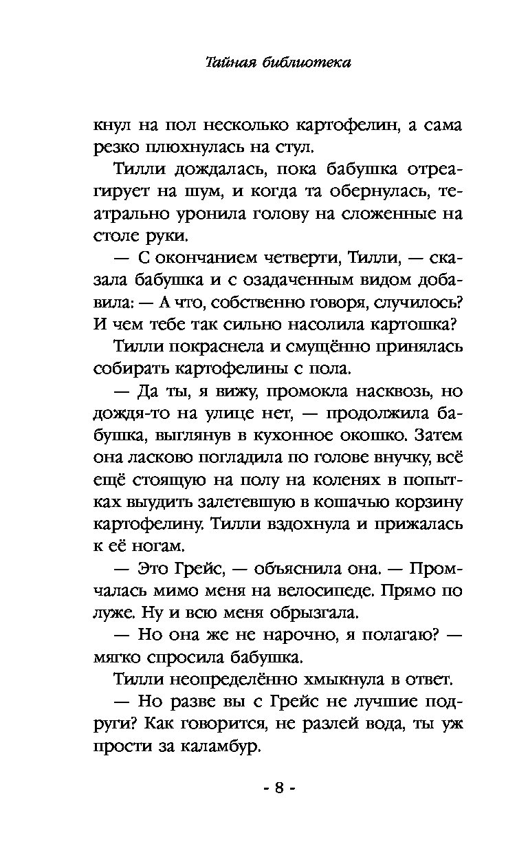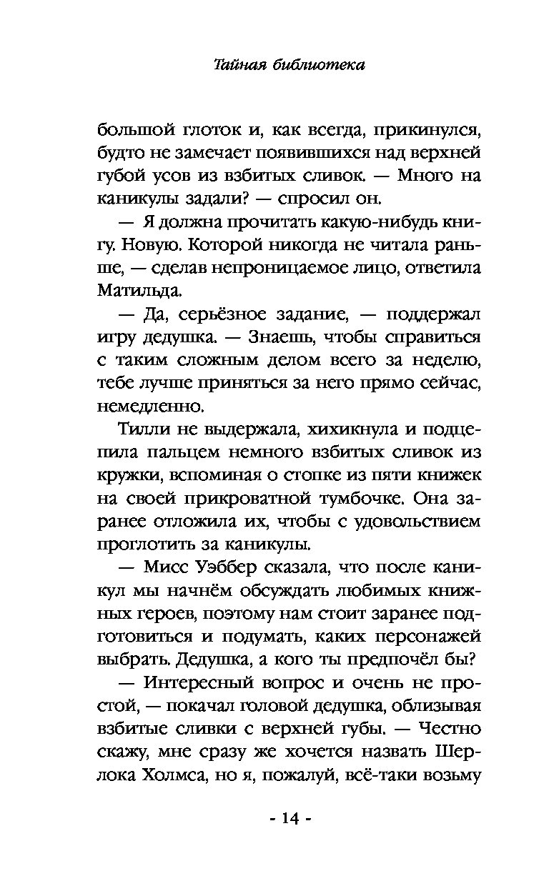4) В этой потрясающей повести настолько интересно рассказывается о других книгах, что просто невозможно удержаться, чтобы тут же не прочитать и их тоже: «Аня из Зелёных Мезонинов», «Алиса в Стране Чудес», «Маленькая принцесса» — все эти и многие другие книги непременно появятся на книжной полке любого, кто прочитает «Тайную библиотеку».