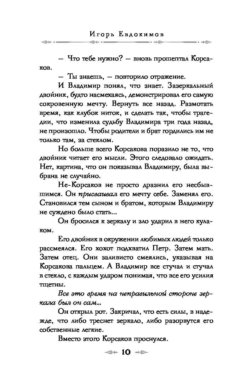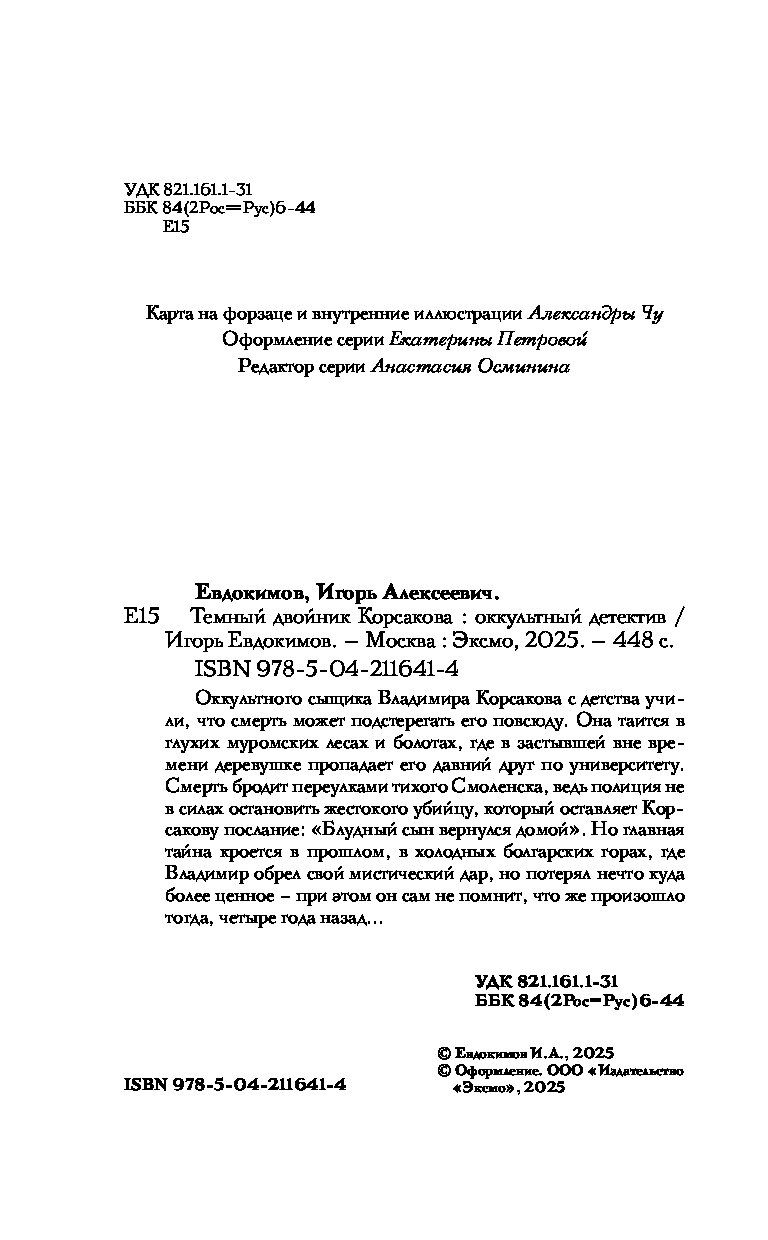 Владимира Корсакова с детства учили, что смерть может подстерегать его повсюду. Она таится в глухих муромских лесах и болотах, где в застывшей вне времени деревушке пропадает его давний друг по университету. Смерть бродит переулками тихого Смоленска, ведь полиция не в силах остановить жестокого убийцу, который оставляет Корсакову послание: «Блудный сын вернулся домой». Но главная тайна кроется в прошлом, в холодных болгарских горах, где Владимир обрел свой мистический дар, но потерял нечто куда более ценное — при этом он сам не помнит, что же произошло тогда, четыре года назад...