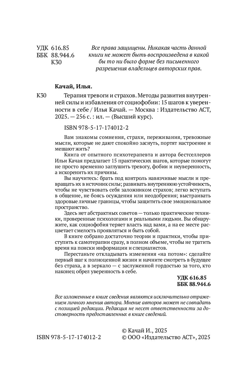 — «Терапия тревоги и страхов. Методы развития внутренней силы и избавления от социофобии: 15 шагов к уверенности в себе» Качай Илья