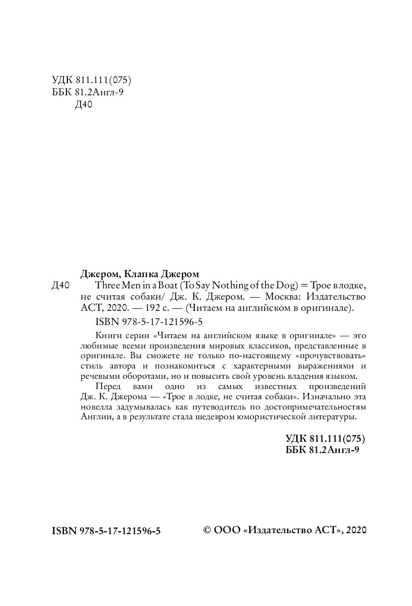 —Книга «Three Men in a Boat (To Say Nothing of the Dog) = Трое в лодке, не считая собаки» Джером К.Д.