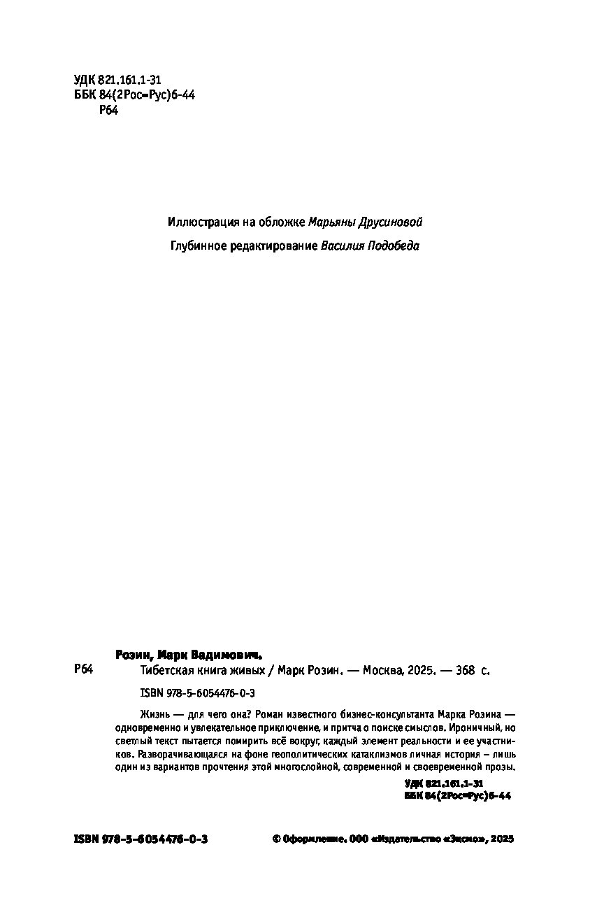 Жизнь — для чего она? Роман известного бизнес-консультанта Марка Розина — одновременно и увлекательное приключение, и притча о поиске смыслов. Ироничный, но светлый текст пытается помирить все вокруг, каждый элемент реальности и ее участников. Разворачивающаяся на фоне геополитических катаклизмов личная история — лишь один из вариантов прочтения этой многослойной, современной и своевременной прозы.