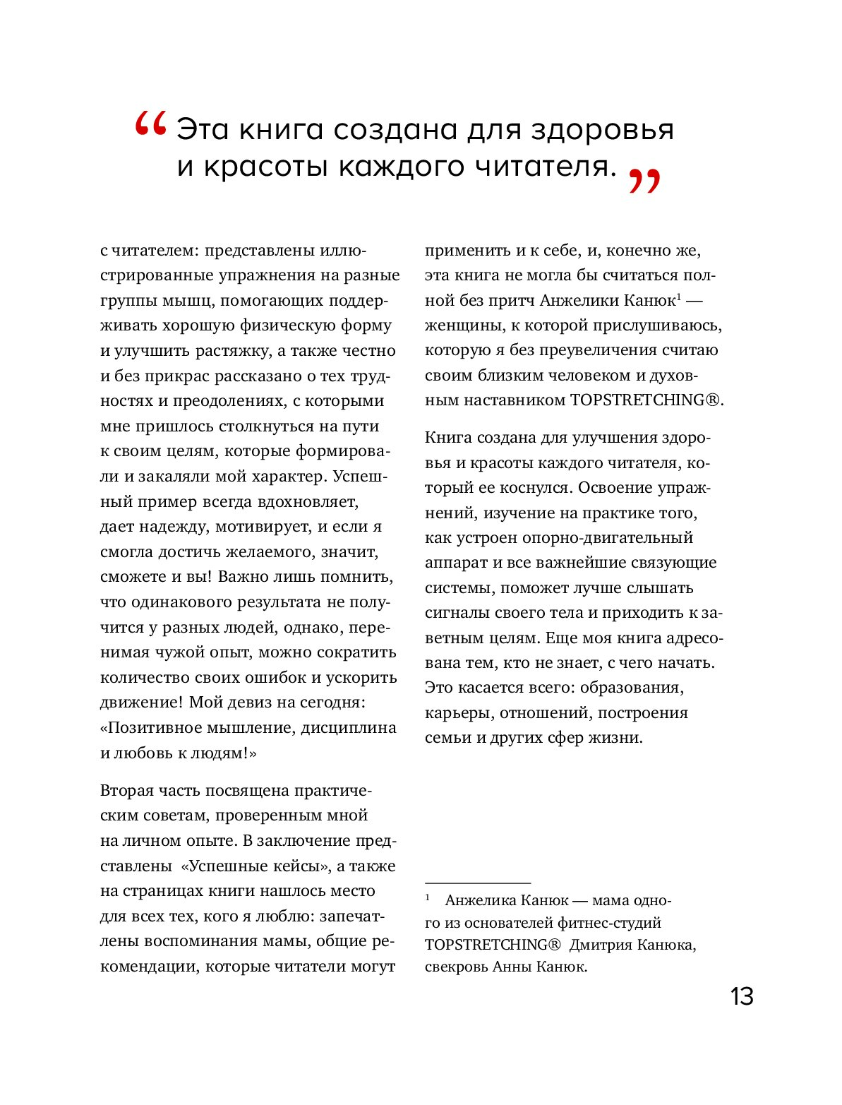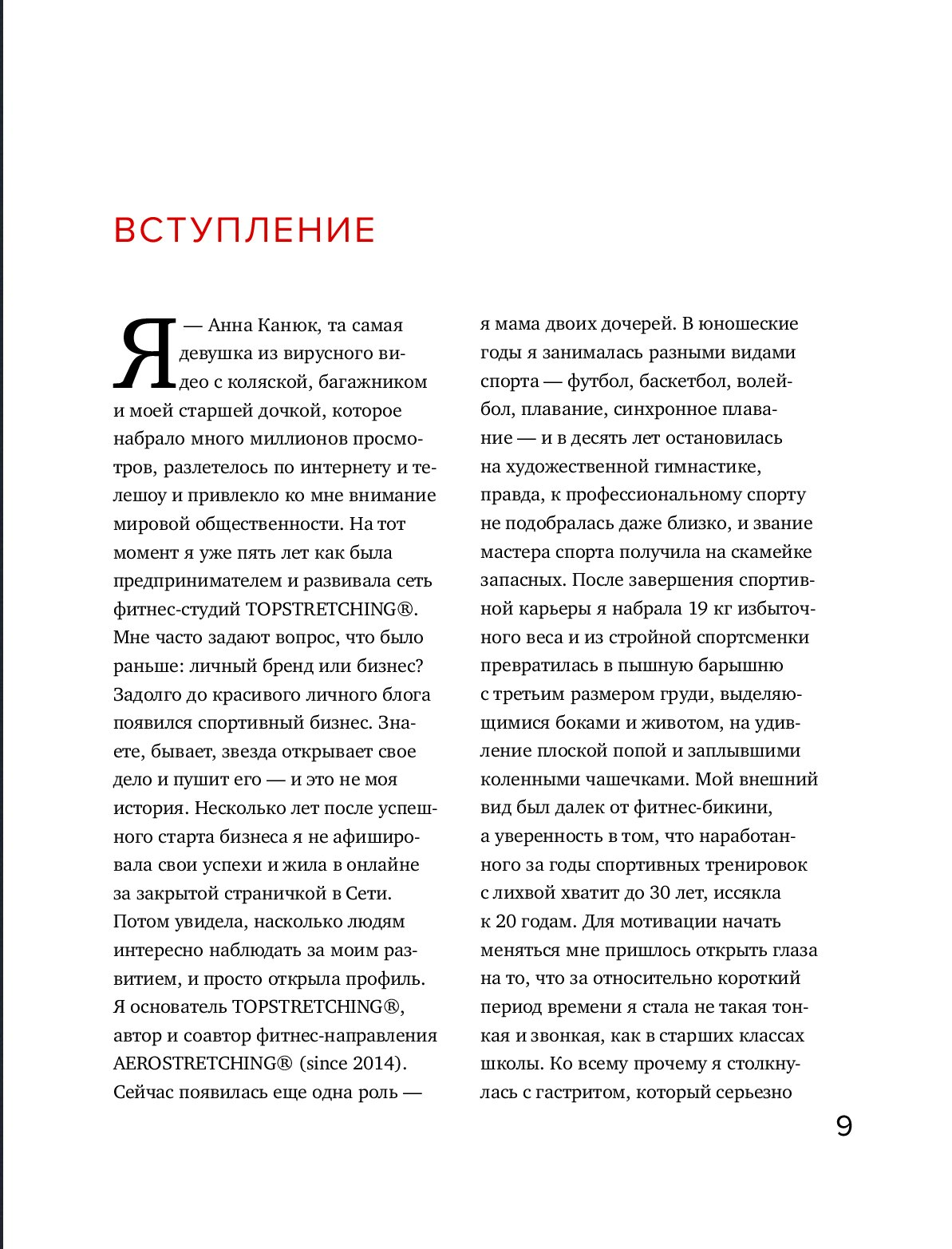 Для того чтобы добиться изменений на физическом уровне, выстроить новый стиль жизни и поддерживать его без нервных срывов и потрясений, требуется изменить мышление. Это Анна Канюк называет «растянуть свой мозг» — медленно, постепенно внедрять полезные привычки, учиться получать удовольствие от спорта и здорового питания, тренировать как тело, так и сознание, быть гибким в принятии решений и нести ответственность за свой образ жизни.