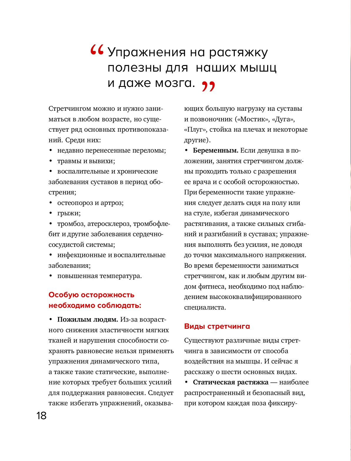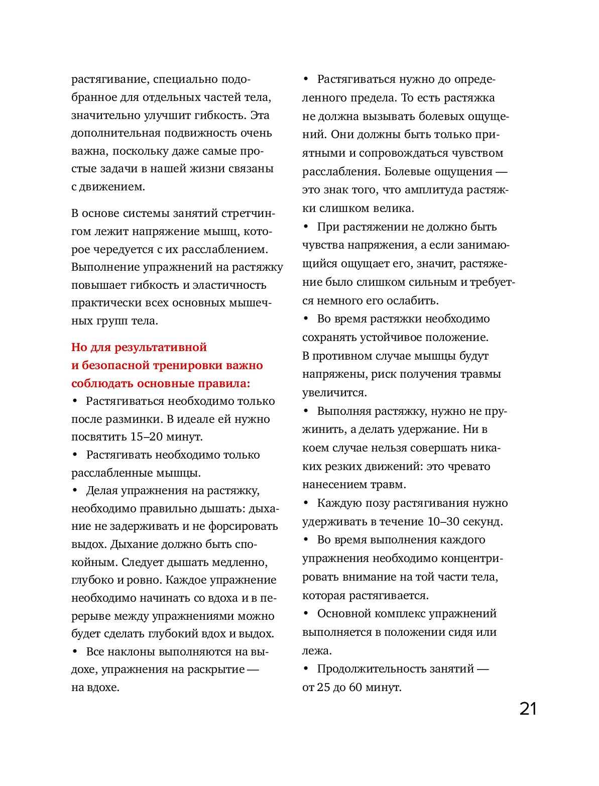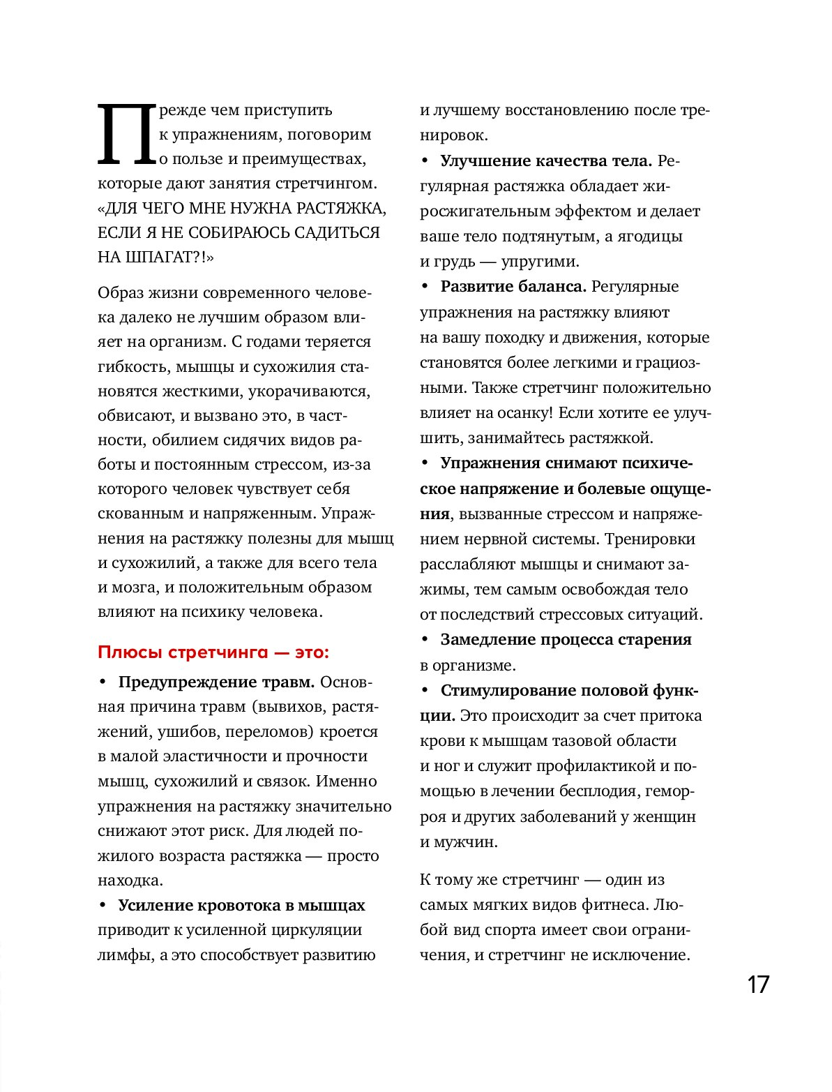 В книге представлены иллюстрированные упражнения на разные группы мышц, которые помогут поддерживать хорошую физическую форму и улучшить растяжку.