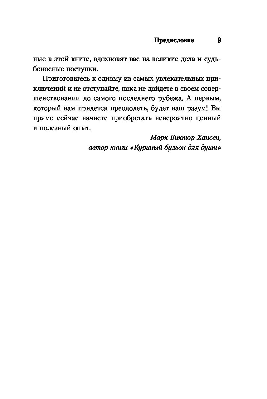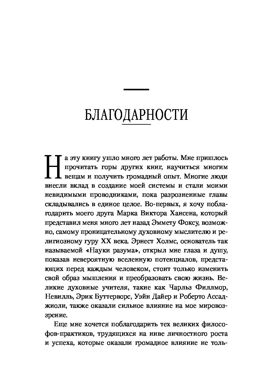 «Эта книга расскажет вам, как отыскать в себе невероятные запасы внутренней энергии и раскрыть удивительные силы, имеющиеся в каждом из нас. Вы удивитесь, когда начнете добиваться совершенно невиданных и более значимых результатов, используя ее концепции и идеи во своей работе». — Марк Виктор Хансен, автор книги «Куриный бульон для души»