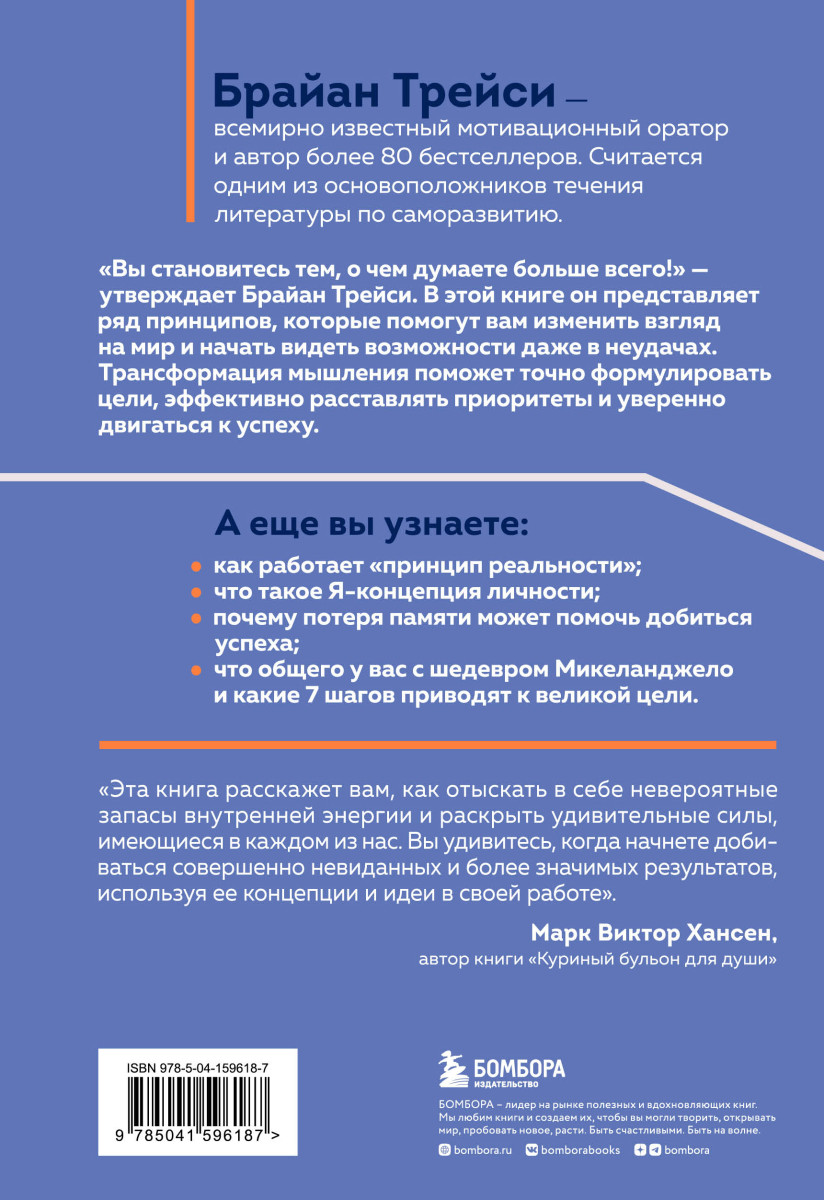 «Вы становитесь тем, о чем думаете больше всего!» — утверждает Брайан Трейси. В этой книге он представляет ряд принципов, которые помогут вам изменить взгляд на мир и начать видеть возможности даже в неудачах. Трансформация мышления поможет точно формулировать цели, эффективно расставлять приоритеты и уверенно двигаться к успеху.