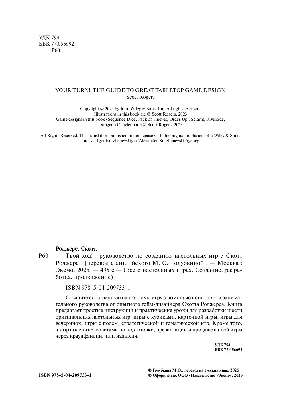 «Отличное практическое руководство для тех, кто хочет создать свою настольную игру. Автор шаг за шагом описывает процесс разработки, дополняя его наглядными примерами и полезными советами. Эта книга станет незаменимым помощником для начинающих гейм-дизайнеров настолок!» — ЮРИЙ ЯМЩИКОВ, автор, продюсер и девелопер более 50 изданных настолок, председатель Гильдии разработчиков настольных игр и основатель студии «PRO геймдизайн»