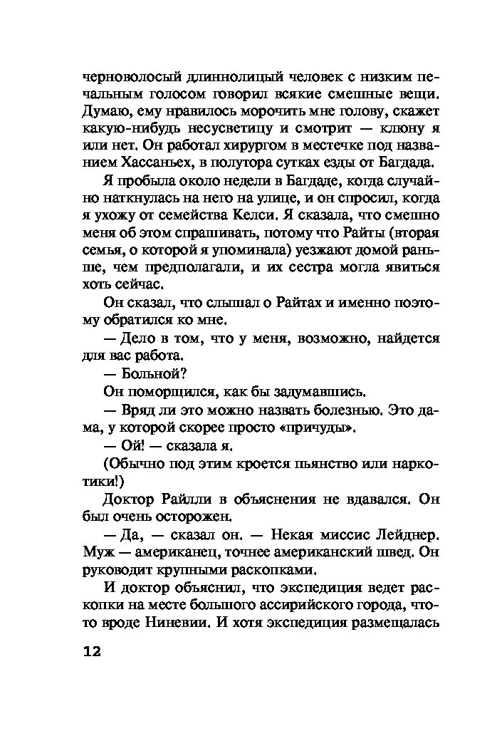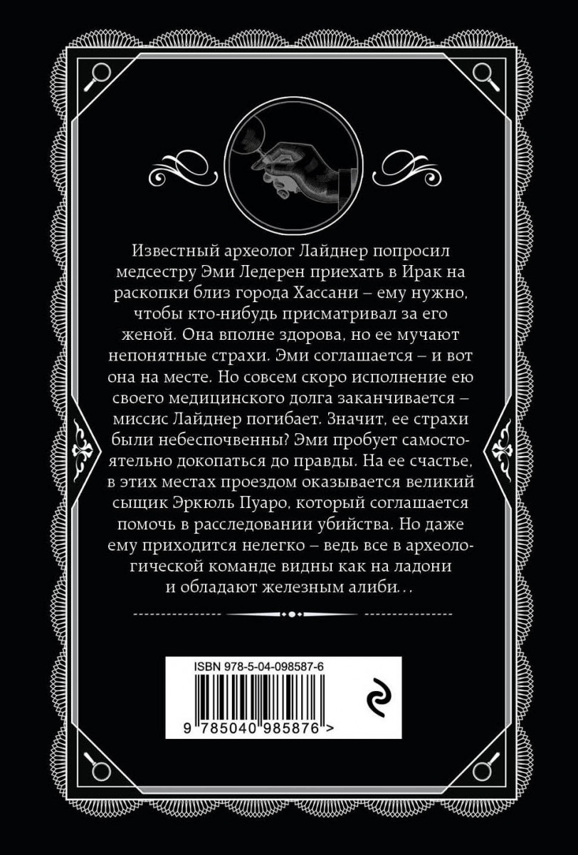 Известный археолог Лайднер попросил медсестру Эми Ледерен приехать в Ирак на раскопки близ города Хассани – ему нужно, чтобы кто-нибудь присматривал за его женой. Она вполне здорова, но ее мучат непонятные страхи. Эми соглашается – и вот она на месте. Но совсем скоро исполнение ею своего медицинского долга заканчивается – миссис Лайднер погибает. Значит, ее страхи были небеспочвенны? Эми пробует самостоятельно докопаться до правды. На ее счастье, в этих местах проездом оказывается великий сыщик Эркюль Пуаро, который соглашается помочь в расследовании убийства. Но даже ему приходится нелегко – ведь все в археологической команде видны как на ладони и обладают железным алиби…