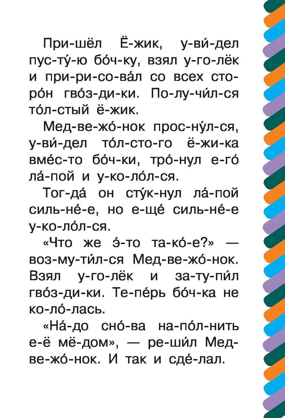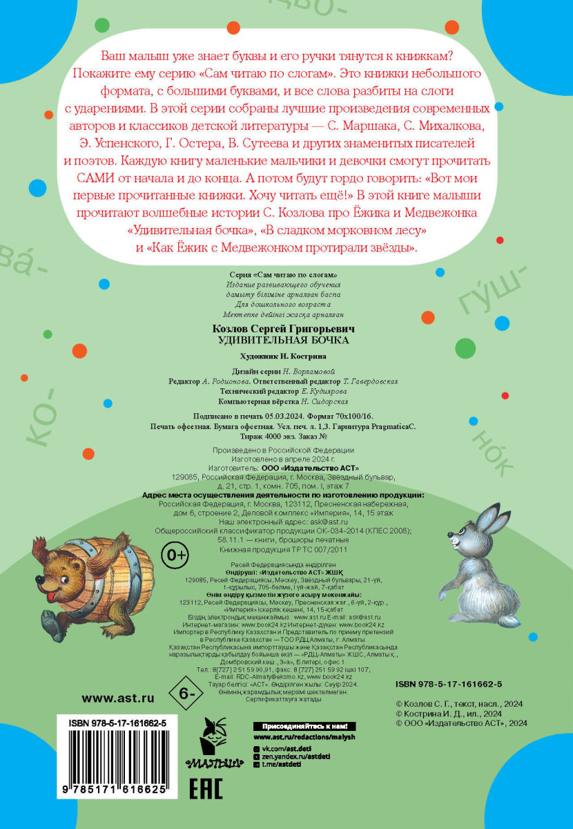 Крупный шрифт, разбивка на слоги, ударения, запоминающиеся цветные иллюстрации - в книгах серии «Сам читаю по слогам» есть всё необходимое для формирования у ребенка прочного навыка чтения и стимулирования устойчивого интереса к книге. А еще это прекрасная возможность познакомиться с лучшими произведениями любимых детских авторов, многие из которых стали неотъемлемой частью отечественной культуры. Знать их - признак образованного, культурного человека. Идеальное сочетание «цена-качество»! Книги не будут обременительны для семейного бюджета и принесут массу пользы, создадут прекрасное настроение. Сказочные истории С. Козлова научат малышей доброте и дружбе.