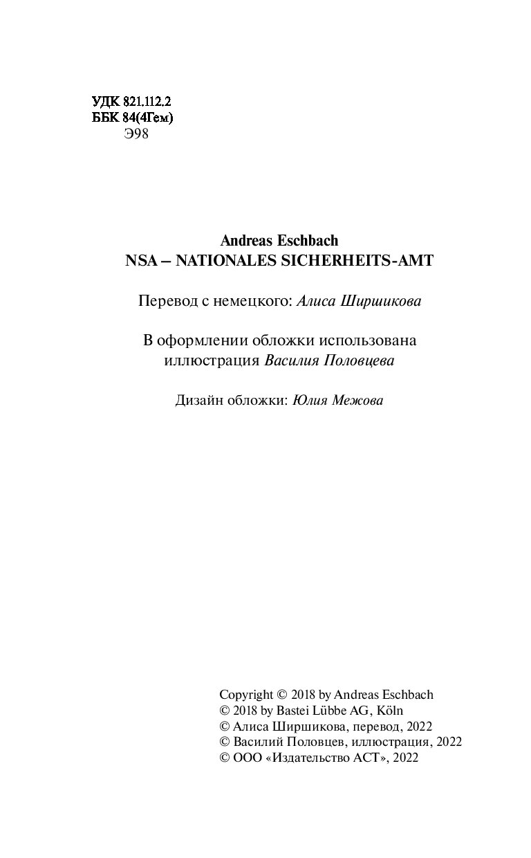 Андреас Эшбах считается самым успешным немецким фантастом. Его книги переведены на английский, французский, итальянский, турецкий, чешский, японский и русский языки.