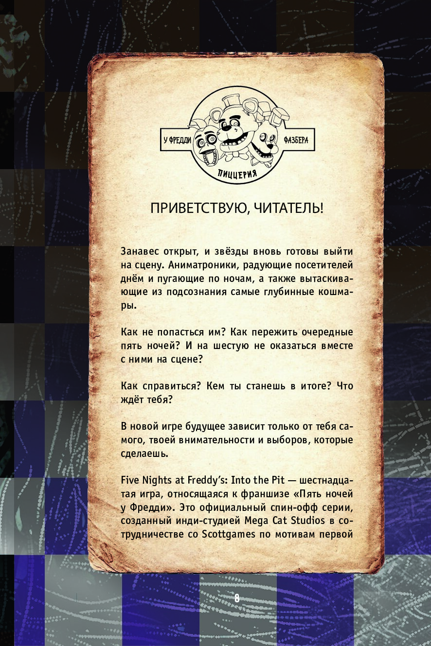 Если вы уже читали книгу «В бассейн» — скорее знакомьтесь с нашим гайдом, который дополняет историю и предлагает новый взгляд на известные события. Внутри подробное описание всех персонажей и локаций, советы по выживанию и сбору предметов, разбор мини-игр, концовок и секретов! Только преданный фанат ФНАФ отыщет все пасхалки к другим книгам франшизы! «Into the Pit» — это не просто игра, она — билет в прошлое, где вас ждет дружба, предательство и борьба за выживание. А наша книга — ключ к победе!