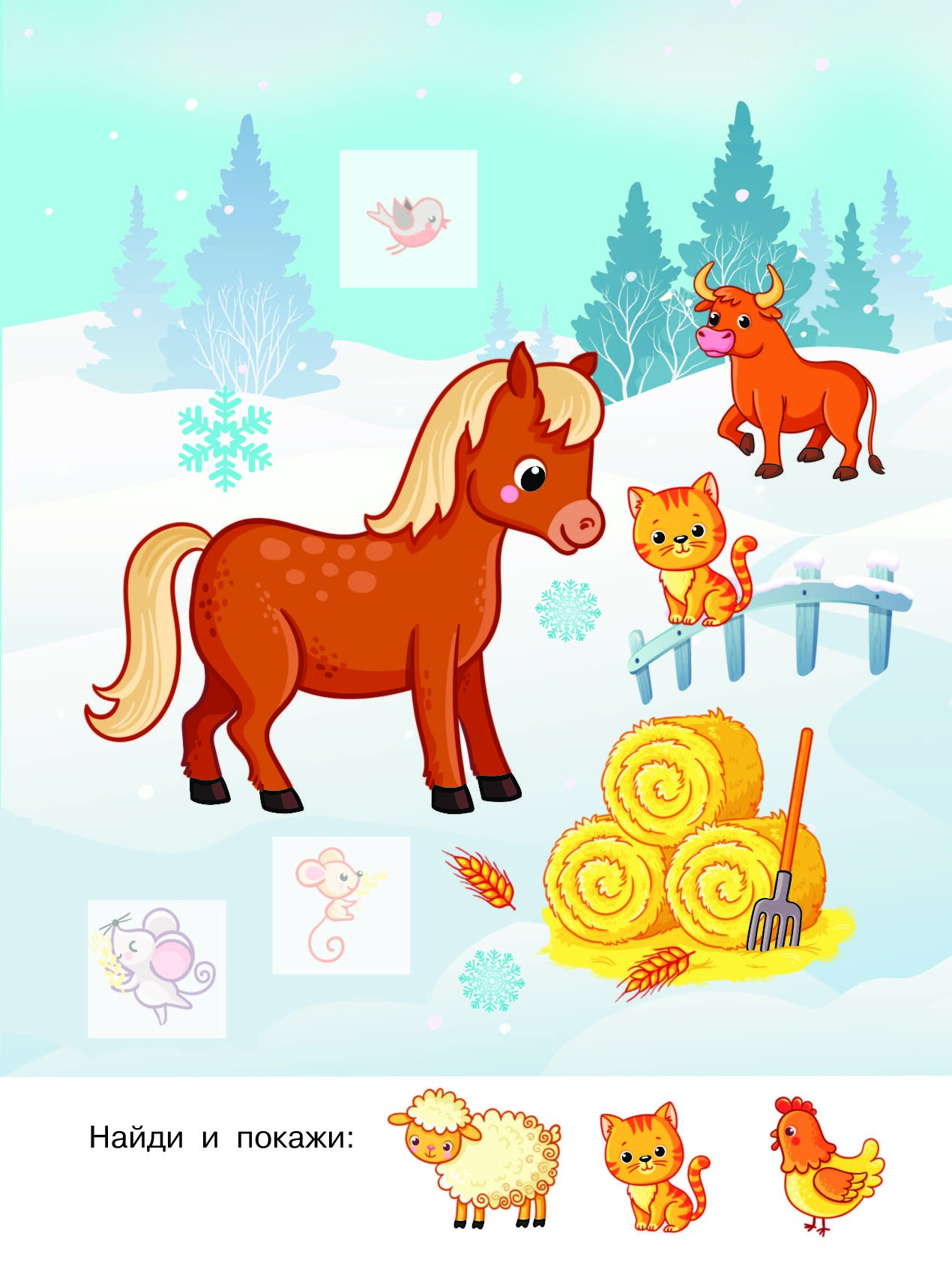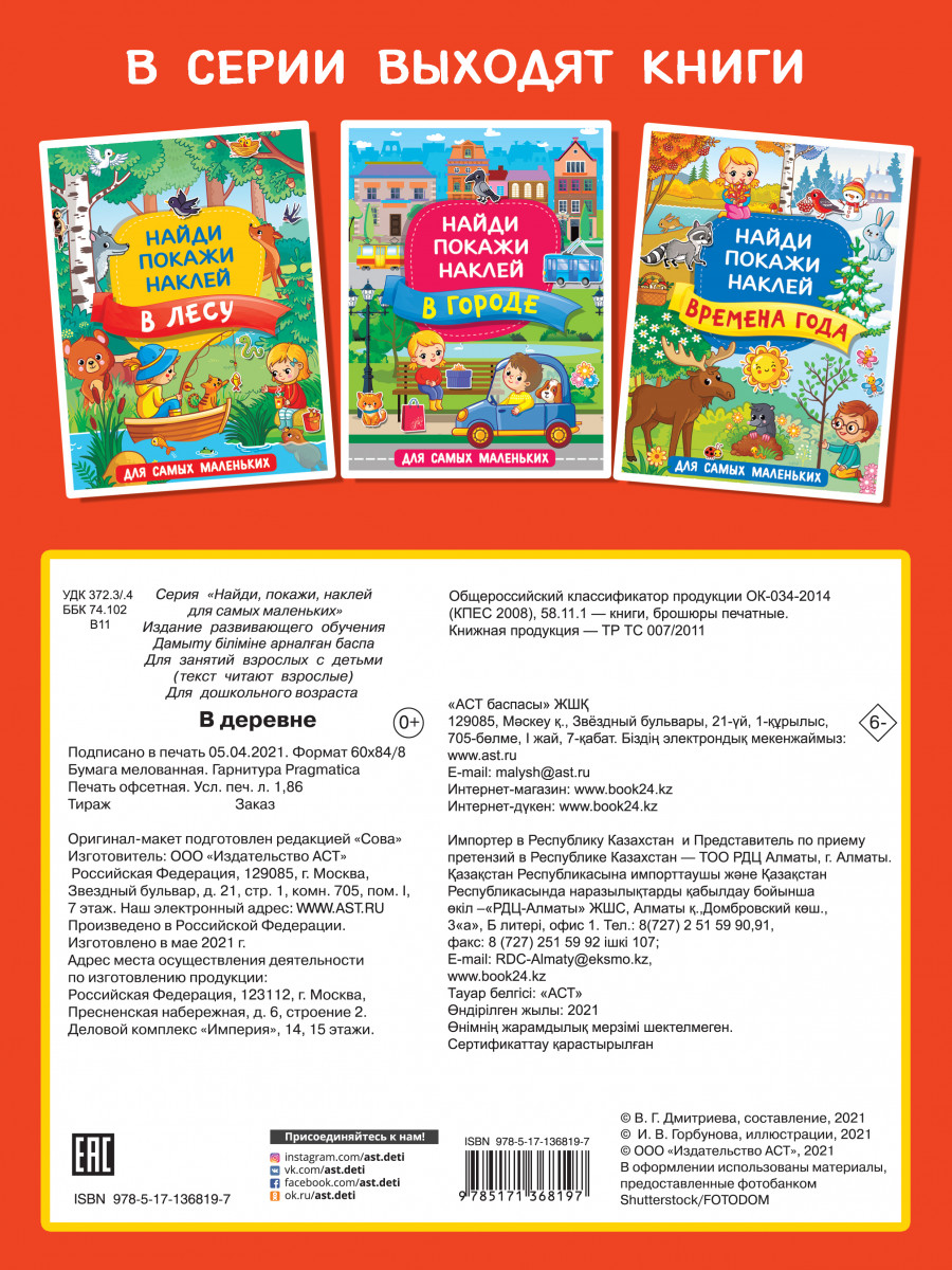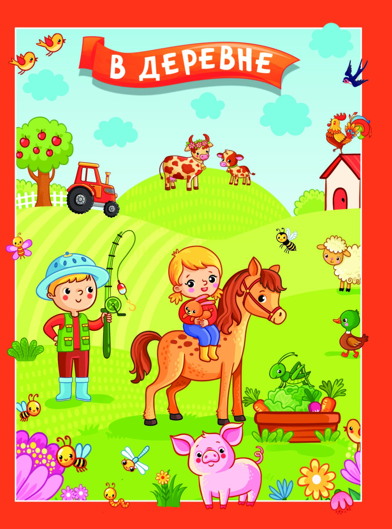 Красочная книга с наклейками. Малыш познакомится с животными, которых можно встретить в деревне, узнает, что растёт в саду и огороде, и многое другое.
