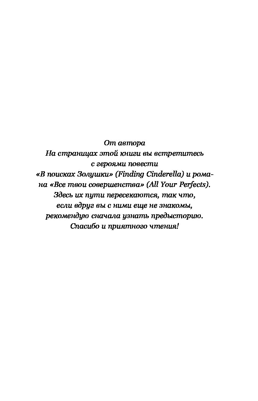 В этом рассказе вы встретитесь с героями романа «Все твои совершенства», которые теперь учатся быть честными не только друг с другом, но и с собой. Это напоминание о том, что идеальные моменты часто создаются совсем неидеальными людьми.