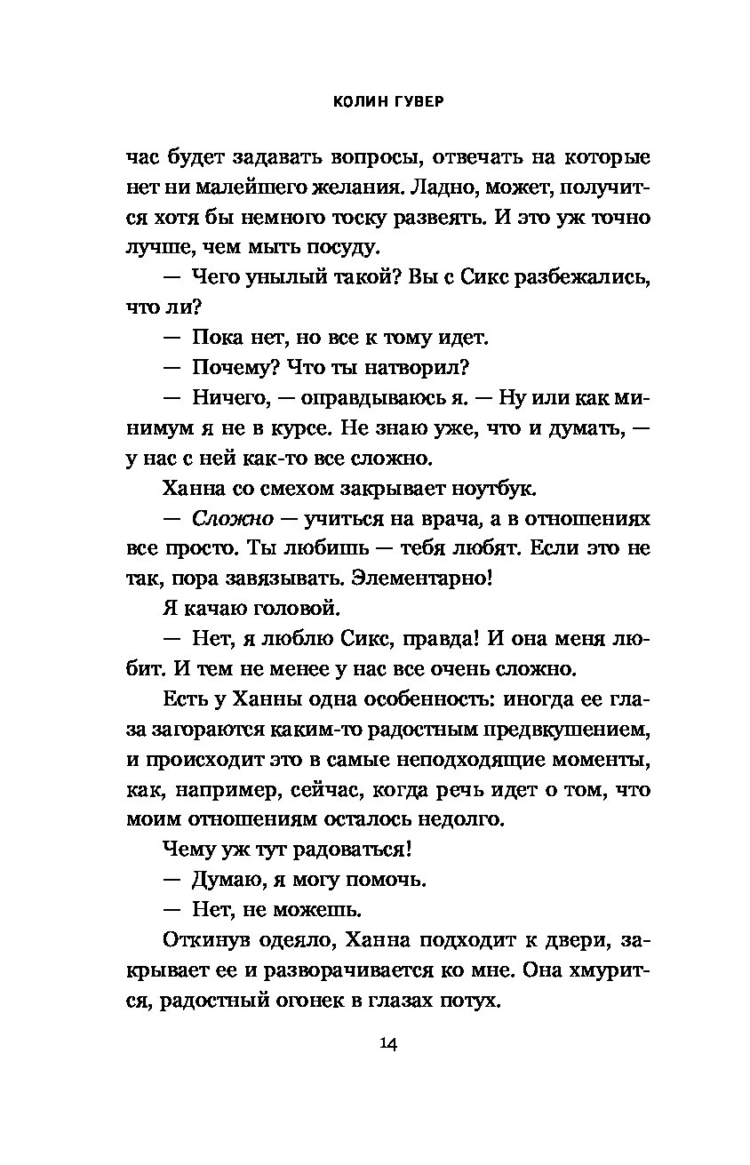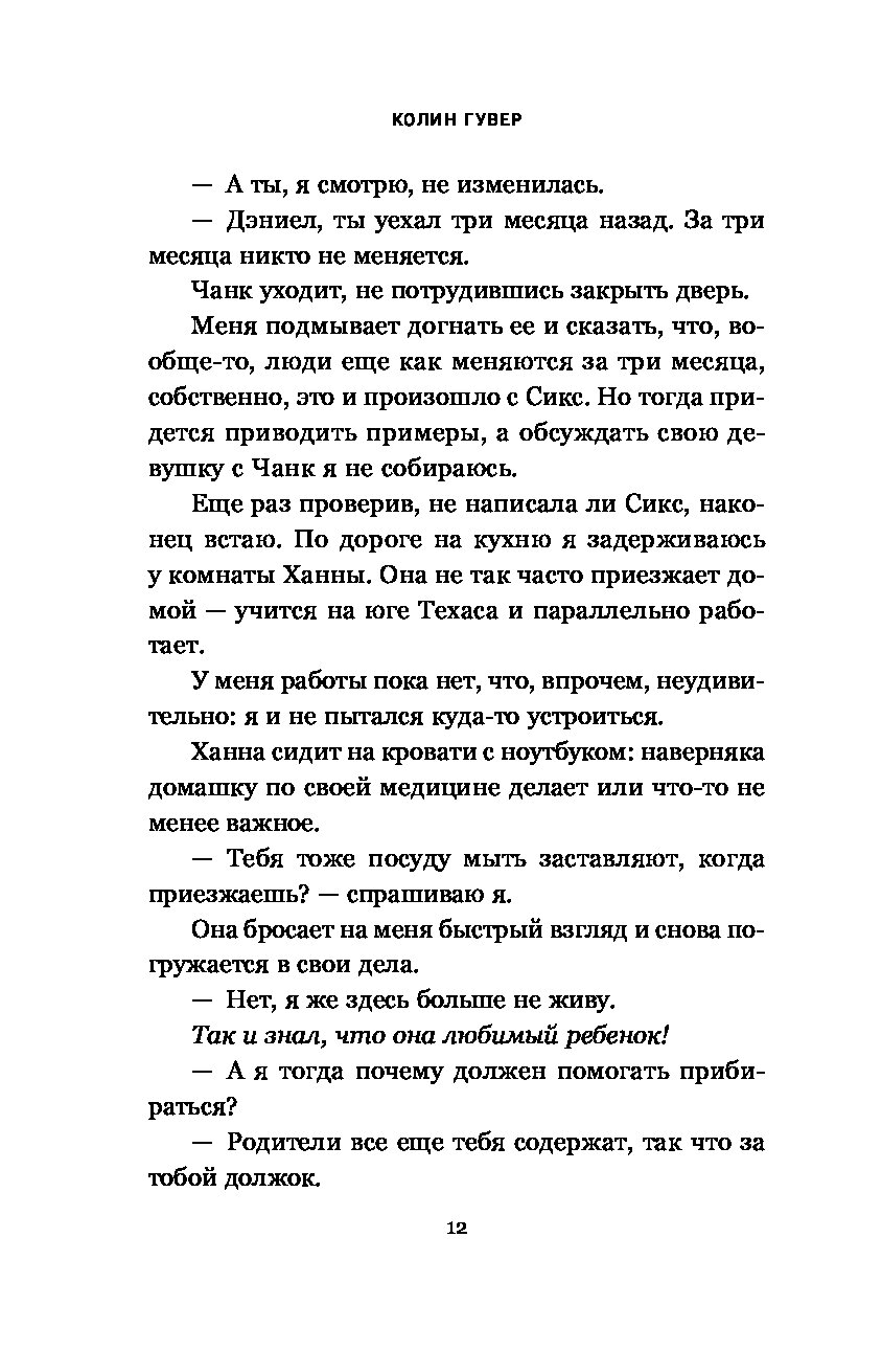 «Это точно в духе Гувер! Неожиданные повороты, эмоциональные качели и много драмы. Будет ли счастливый конец? Не остановишься, пока не дочитаешь».