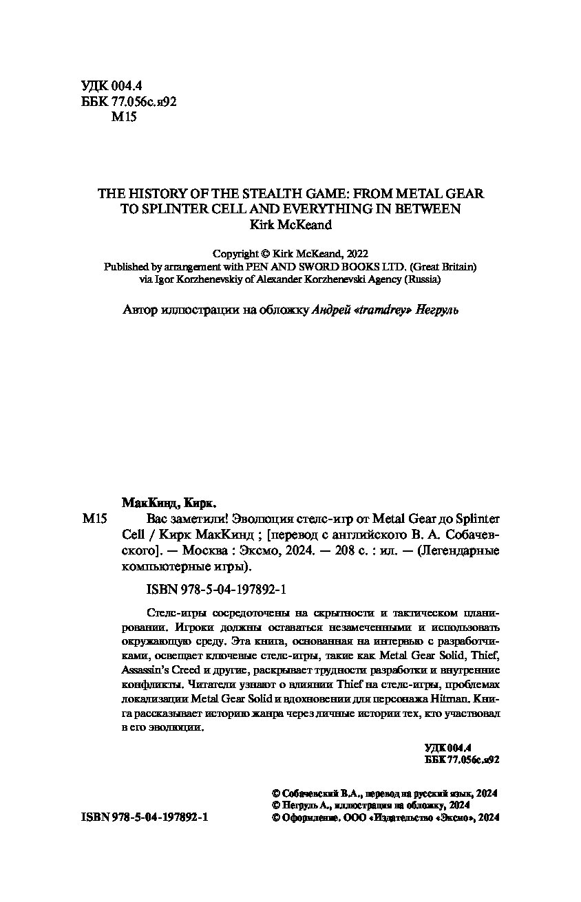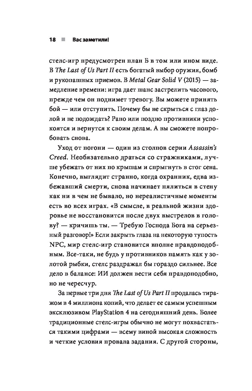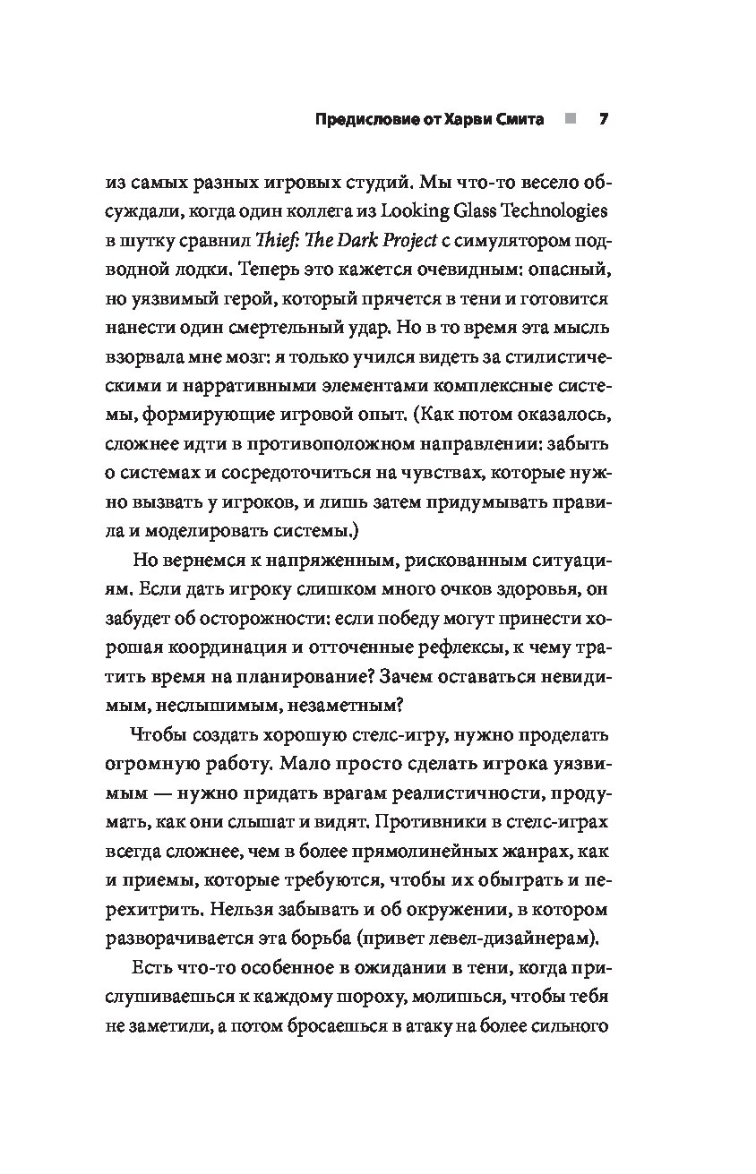 Перед вами книга, основанная на более чем дюжине интервью из первых рук. Она расскажет об основных играх, определяющих жанр стелс: Metal Gear Solid, Thief, Deus Ex, Dishonored, Assassin’s Creed, Hitman, Splinter Cell, Prey, The Last of Us Part II и других. Вас ждут интервью с инсайдерами о трудностях разработки, внутренних конфликтах, об изменениях в направлении, а также о причинах и задачах, стоящих за конкретными решениями и механиками.
