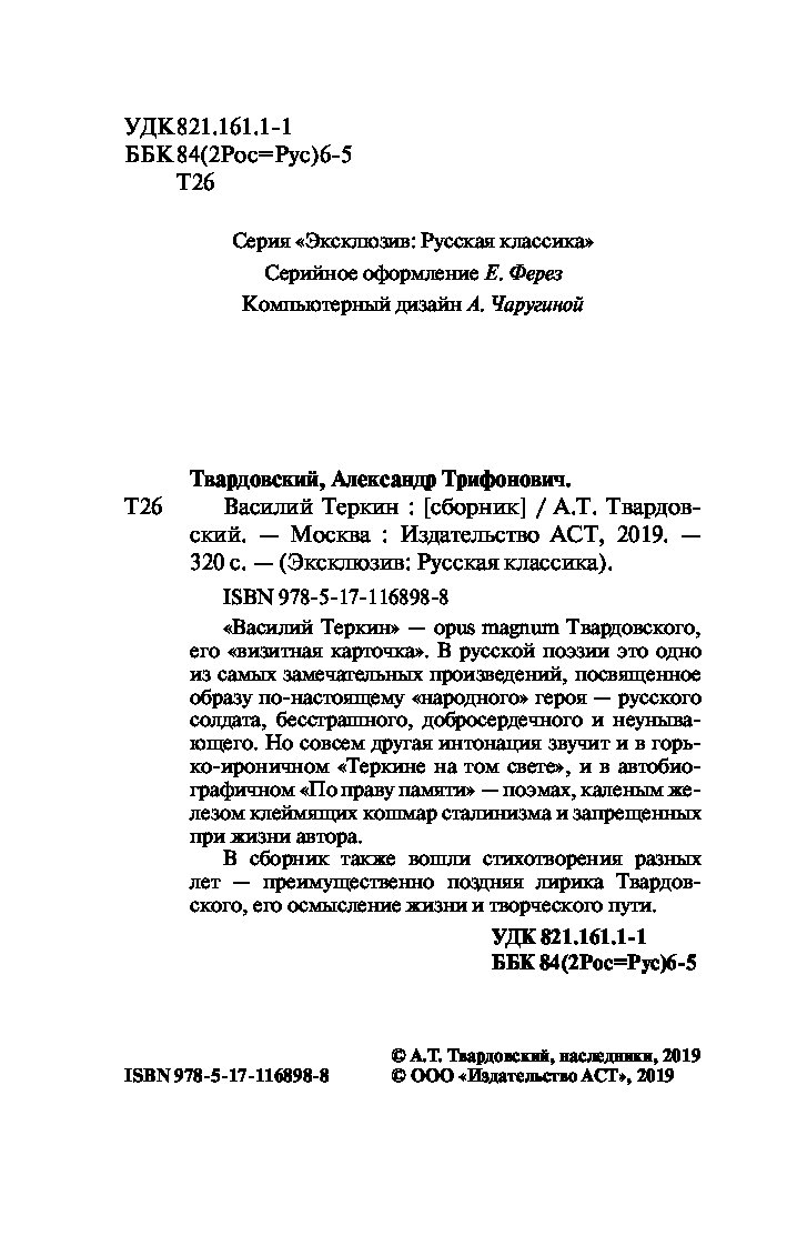 Если вы хотите заказать и купить книгу Василий Теркин недорого, то в интернет-магазине Book24.kz можно сделать покупку по вполне доступной цене. Мы сохраняем конкурентную стоимость книг, так как напрямую сотрудничаем с издательствами. Благодаря нашему сервису, интересующая вас книга будет лежать у вас на столе уже через несколько дней. Гарантируем адресную доставку заказов по Казахстану. Доставляем книги в Актау, Актобе, Атырау, Караганду, Кокшетау, Костанай, Кызылорду, Павлодар, Петропавловск, Талдыкорган, Тараз, Уральск, Усть-Каменогорск, Шымкент, Алматы, Астану и другие города в течение 1-9 дней. Убедиться в правильности выбора вам помогут отзывы покупателей, краткое описание издания и фото книги.