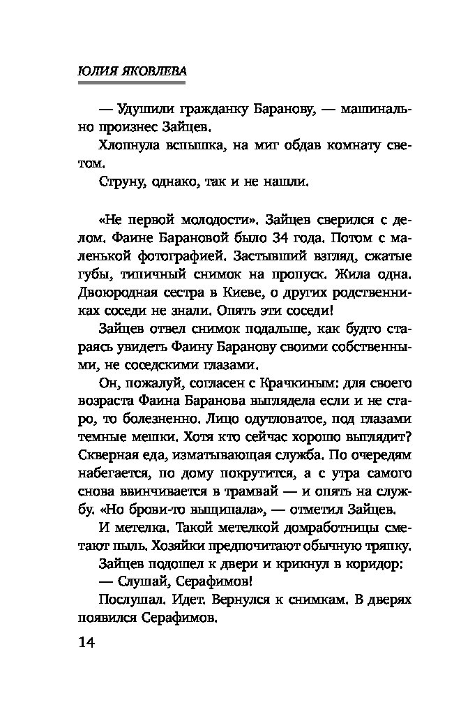 Юлия Яковлева делает то, на что не отважился до нее ни один писатель, – перемещает классический детективный сюжет в сталинскую эпоху. И меняет наши представления о детективе, а заодно и о всей литературе.