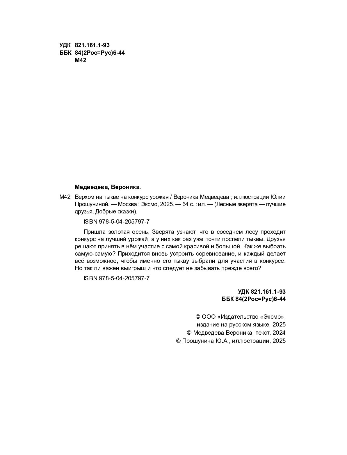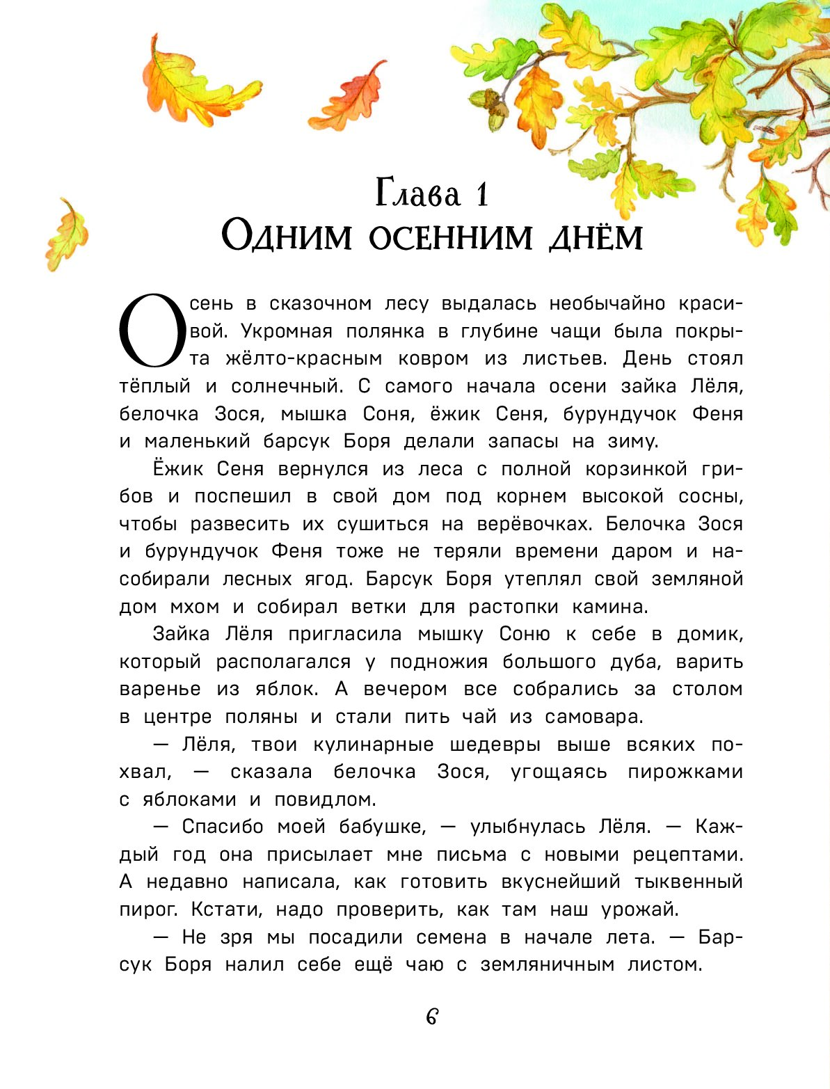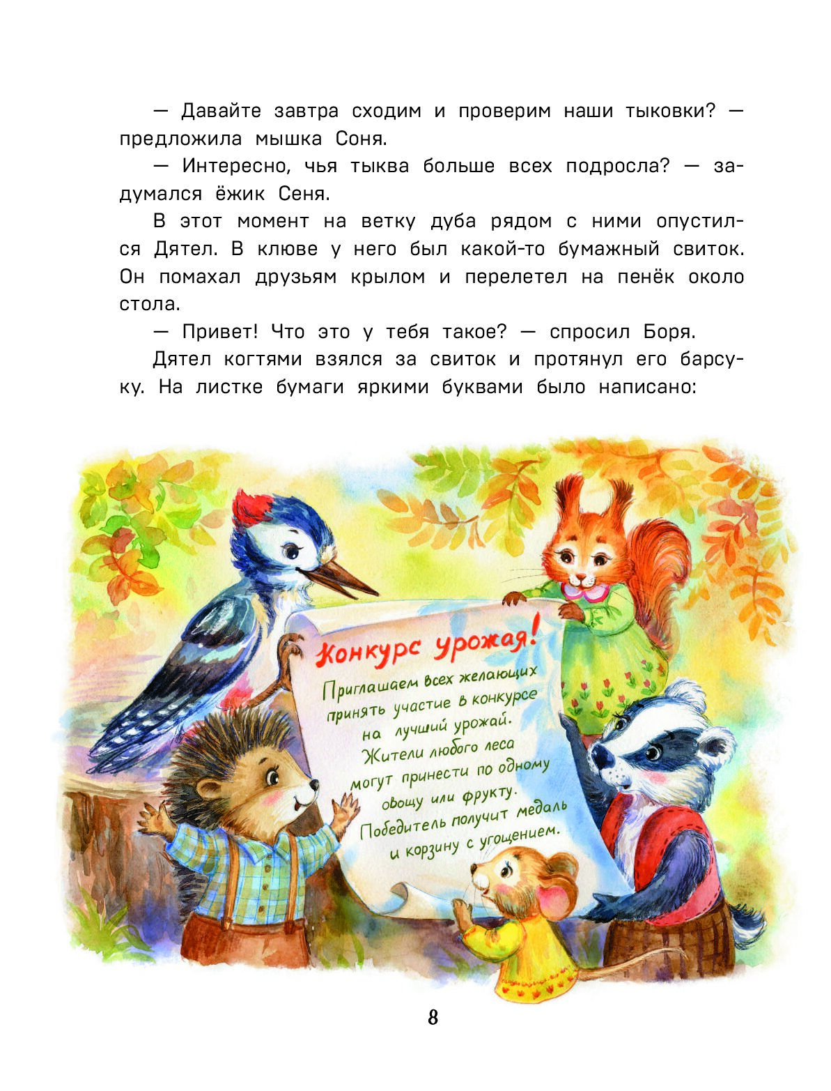 Устройте себе уютный вечер, читая о дружных и трудолюбивых зверятах и любуясь невероятными акварельными иллюстрациями на мелованной бумаге, в которых важна каждая деталь. А после приготовьте вкуснейший тыквенный пирог по рецепту в конце книги.