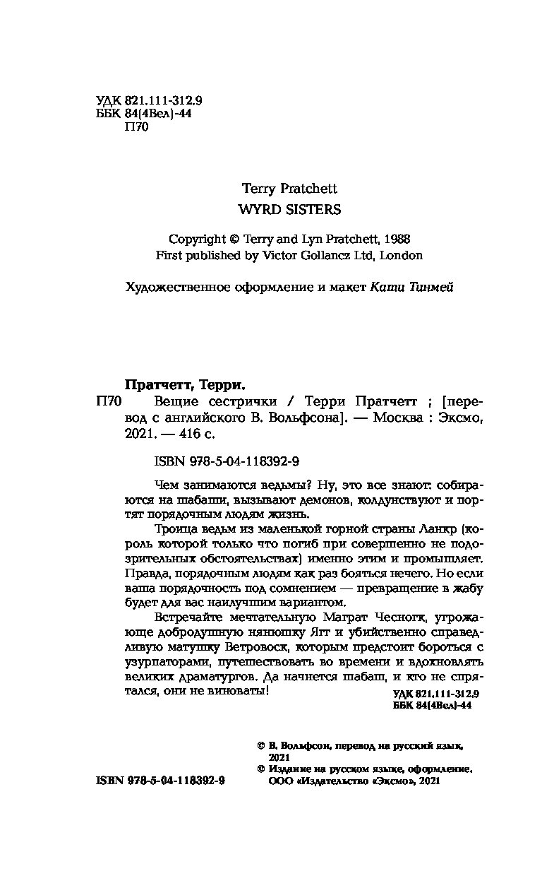 Встречайте мечтательную Маграт Чесногк, угрожающе добродушную нянюшку Ягг и убийственно справедливую матушку Ветровоск, которым предстоит бороться с узурпаторами, путешествовать во времени и вдохновлять великих драматургов. Да начнётся шабаш, и кто не спрятался, они не виноваты!