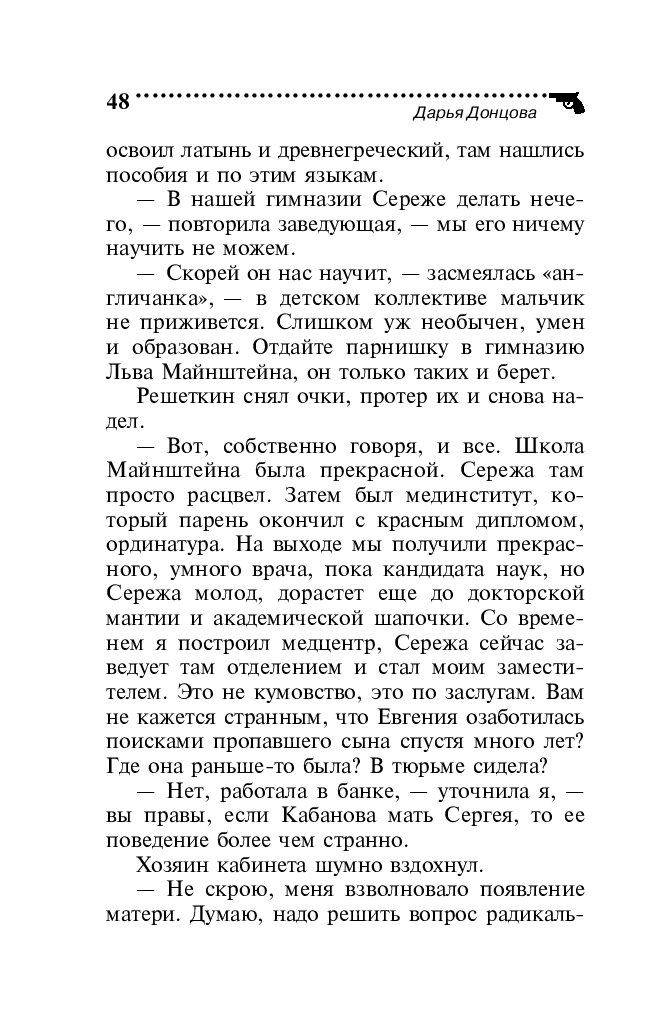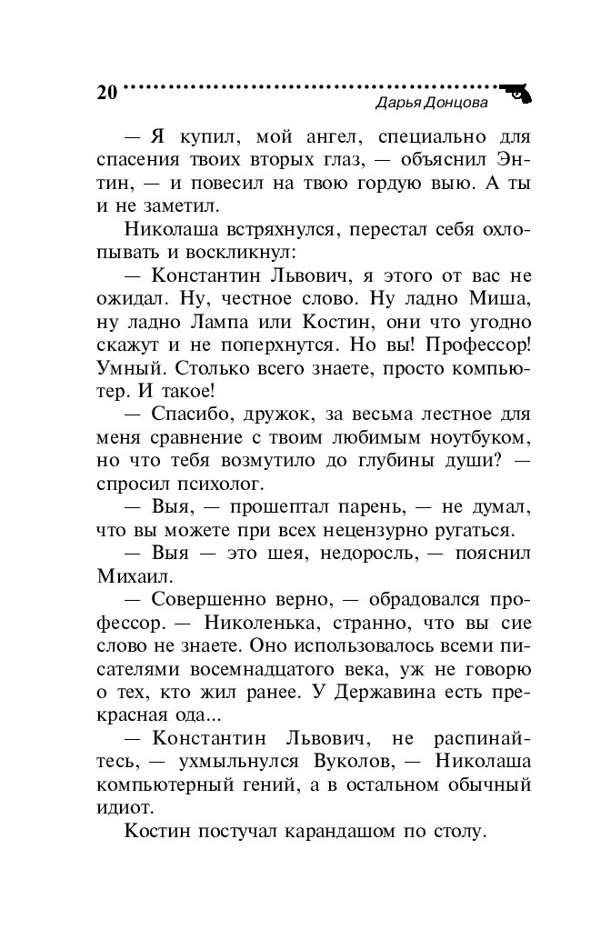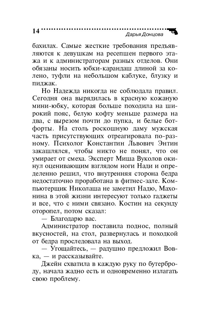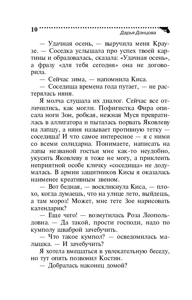 «Донцова невероятная работяга! Я не знаю ни одного другого писателя, который столько работал бы. Я отношусь к ней с уважением, как к образцу писательского трудолюбия. Женщины нуждаются в психологической поддержке и получают ее от Донцовой. Я и сама в свое время прочла несколько романов Донцовой. Ее читают очень разные люди. И очень занятые бизнес-леди, чтобы на время выключить голову, и домохозяйки, у которых есть перерыв 15—20 минут между отвести-забрать детей». — Галина Юзефович, литературный критик